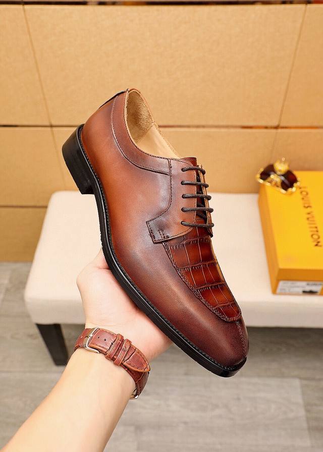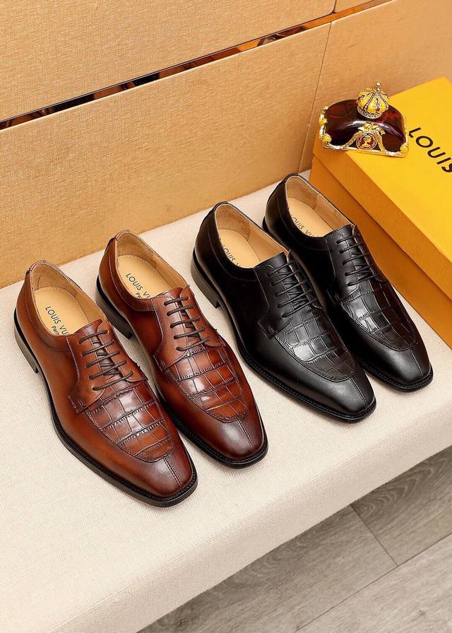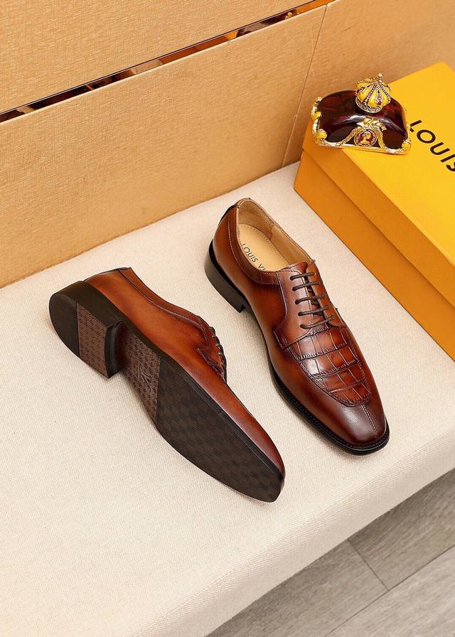 / 商品商标:Louis Vuitton 路易威登 商务皮鞋正码码数: 38-44 45.46.47订制商品材料:精选 进口头层小牛皮圧花鞋面,进口头层牛皮内里 强