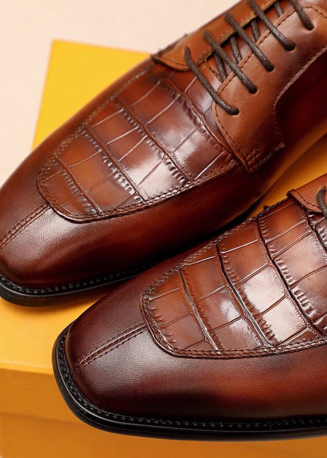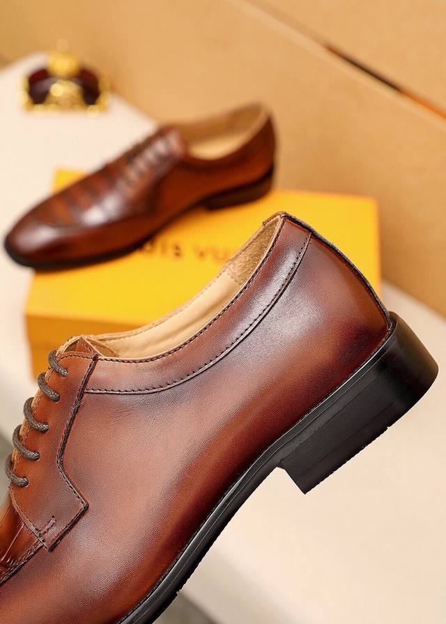 商品商标:Louis Vuitton 路易威登 商务皮鞋正码码数: 38-44 45.46.47订制商品材料:精选 进口头层小牛皮圧花鞋面,进口头层牛皮内里 强