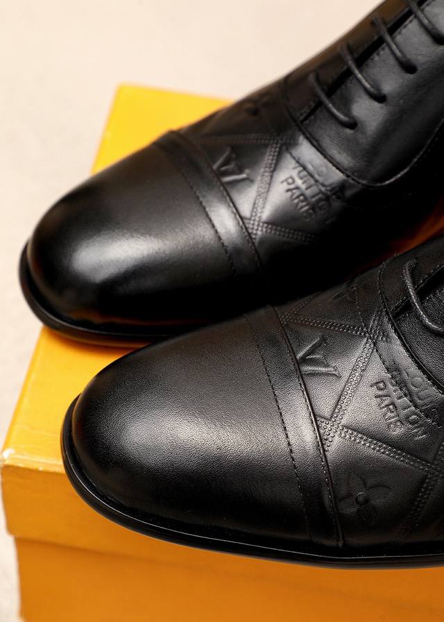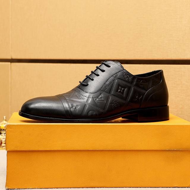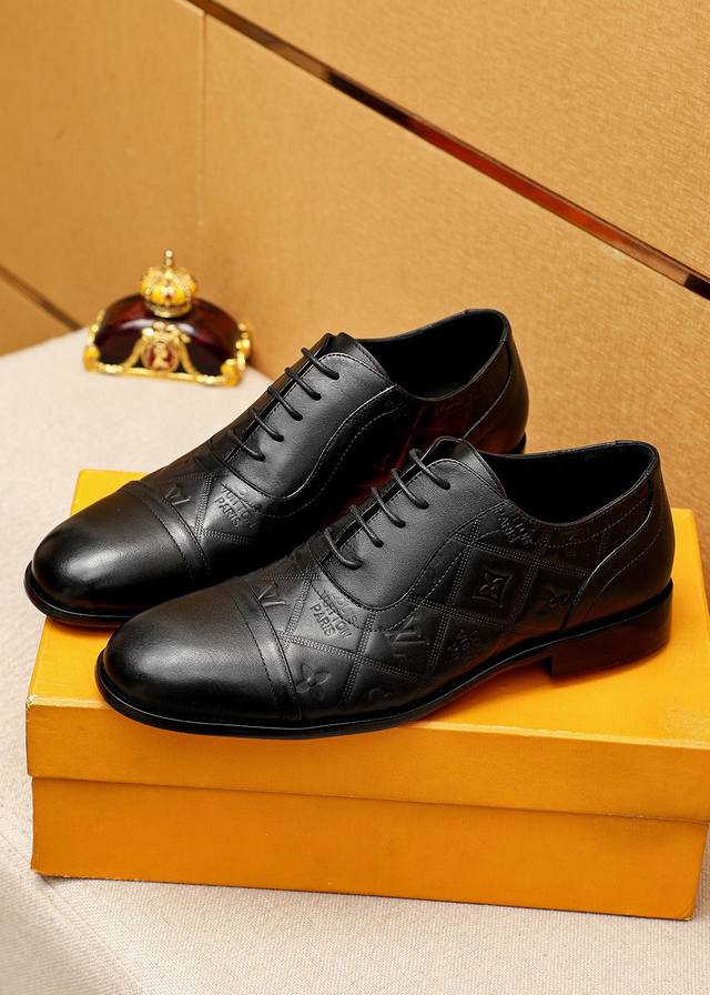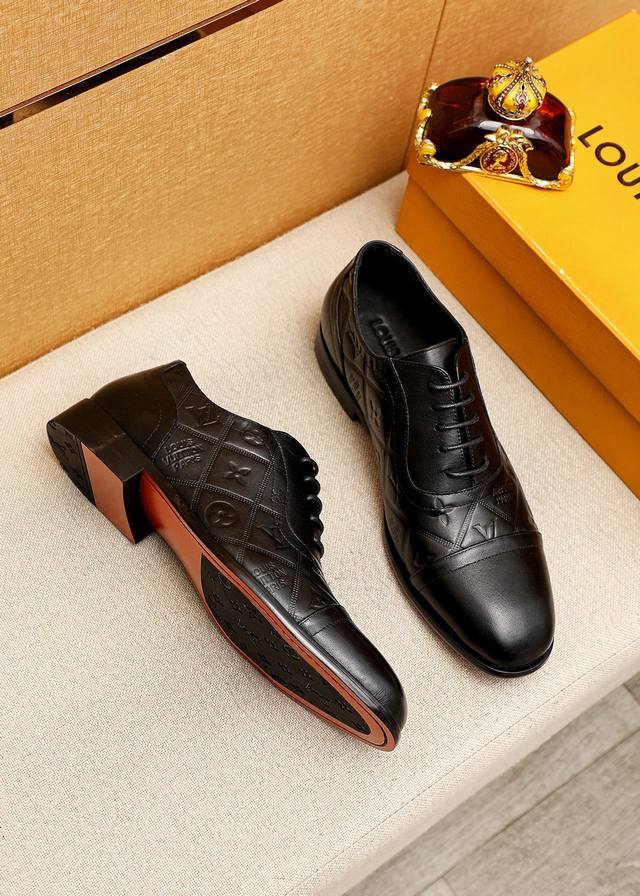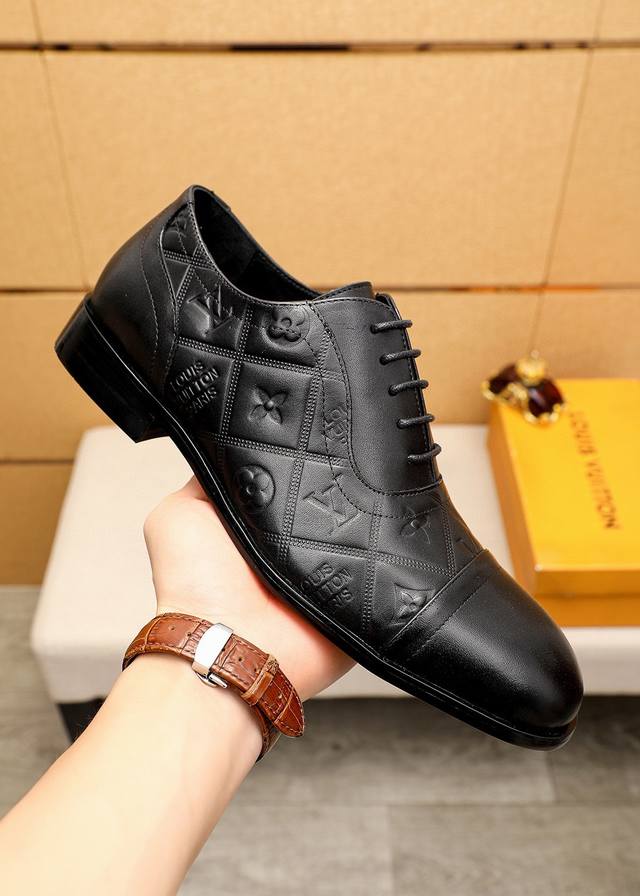 商品商标:Louis Vuitton 路易威登 商务皮鞋正码码数: 38-44 45.46.47订制商品材料:精选 进口头层小牛皮圧花鞋面,进口头层牛皮内里 强