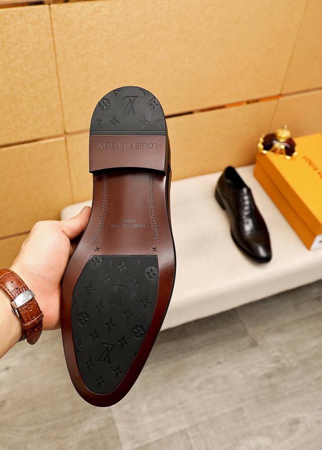 出厂价 Lv 原单牛皮内里 Lv最新真皮商务西装鞋官网同步上市,意大利进口 头层牛皮一比一重金打造,官网1:1橡胶大底...