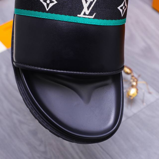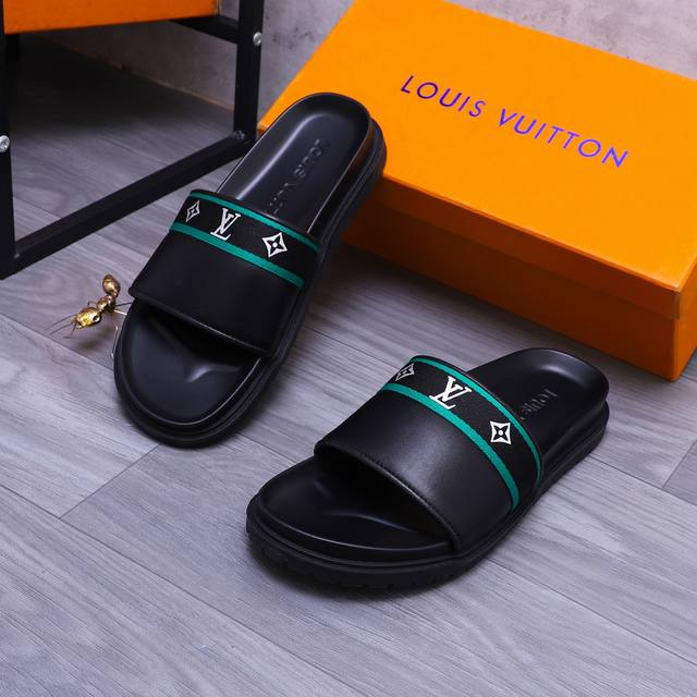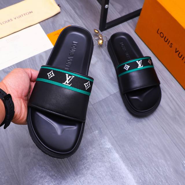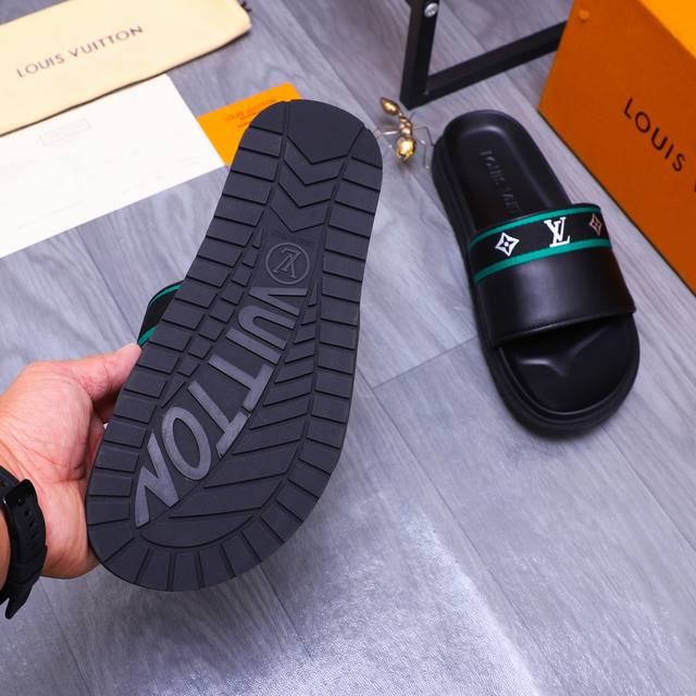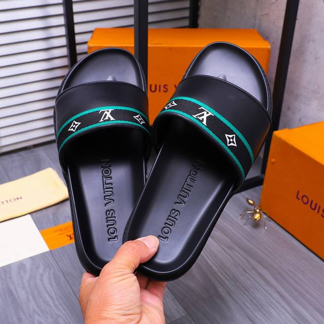 商品商标:Louis Vuitton 路易威登 拖鞋 正码码数: 38-45 商品材料:精选牛皮拼接鞋面 脚背羊皮里 原版大底