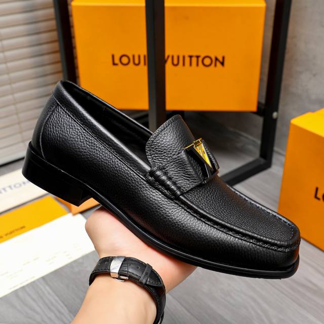 商品商标:Lv 路易威登 商务套脚皮鞋 正码码数: 39-44 45 定做不退换 商品材料:精选荔纹牛皮鞋面 牛皮内里 原版大底