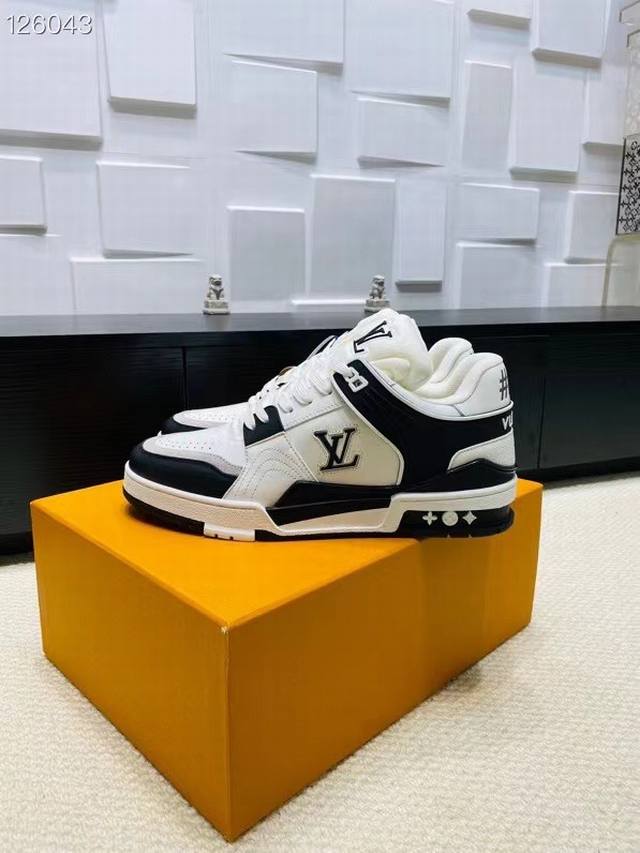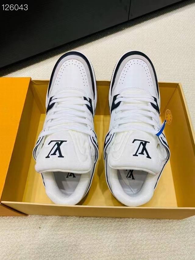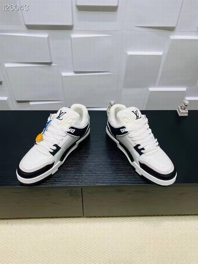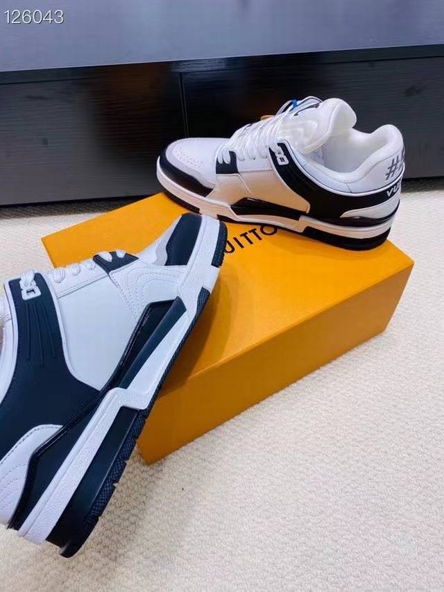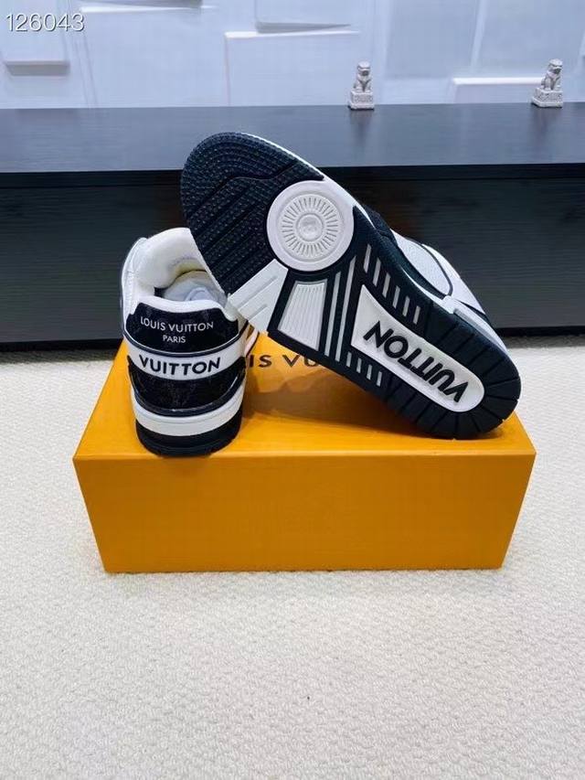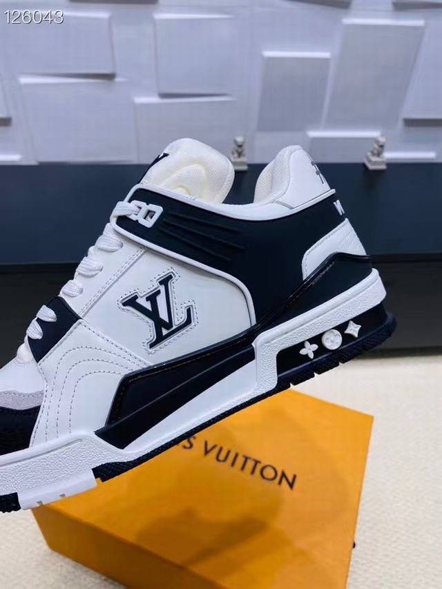 官方同步 新颜色 工艺精湛 定制材料 原版开发 品质出货 欢迎对比 Lv板鞋系列 Lv Trainer Maxi运动鞋将成衣系列的宽松廓形引入virgilabl