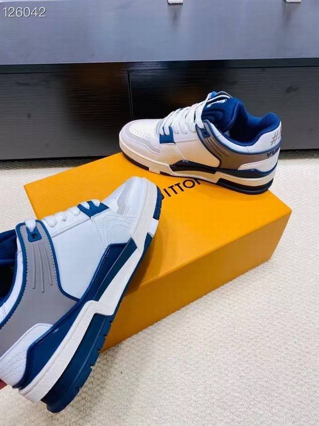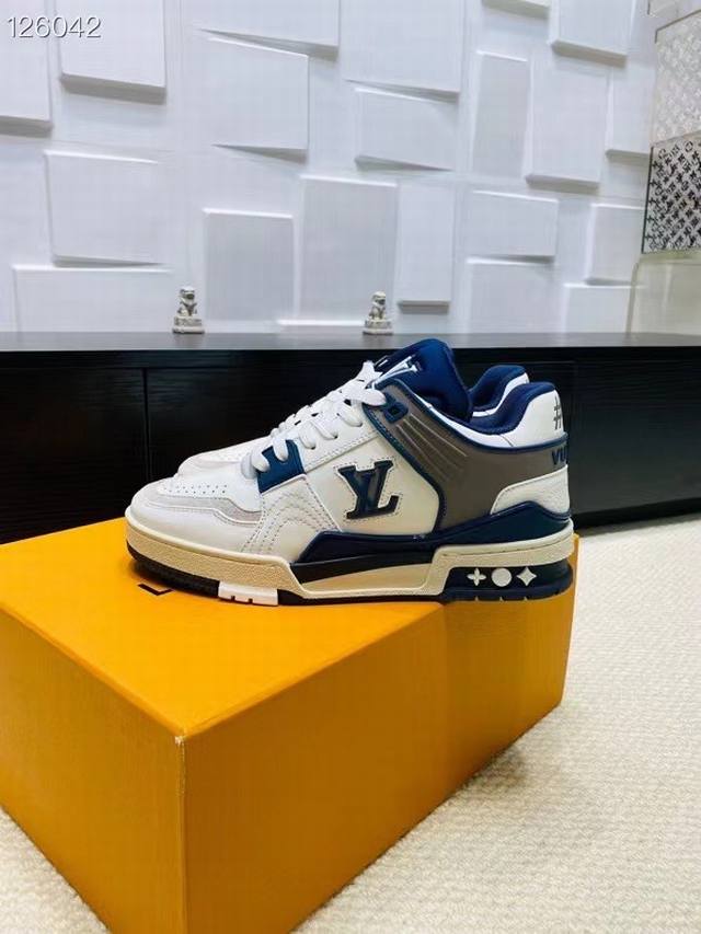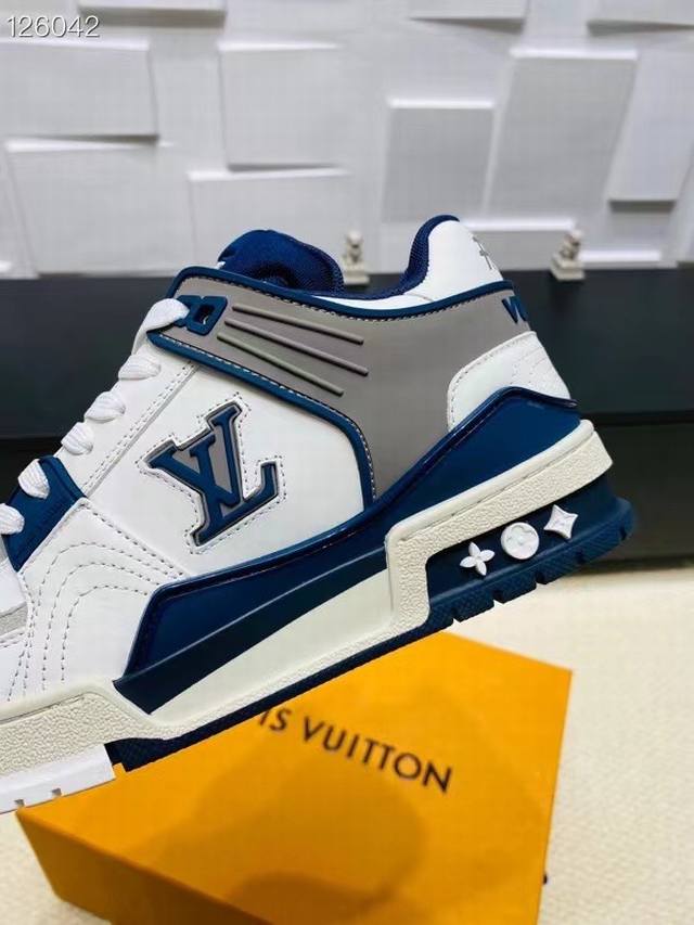 Lv Trainer Maxi运动鞋将成衣系列的宽松廓形引入virgilabloh笔下的lvtrainer运动鞋设计,春夏男装秀场瞩目亮相。牛皮革鞋面结合粗犷织物鞋带,以缤纷串珠点明品牌经典元素。Lv字母标注鞋舌,Monogram花卉栖身外底。