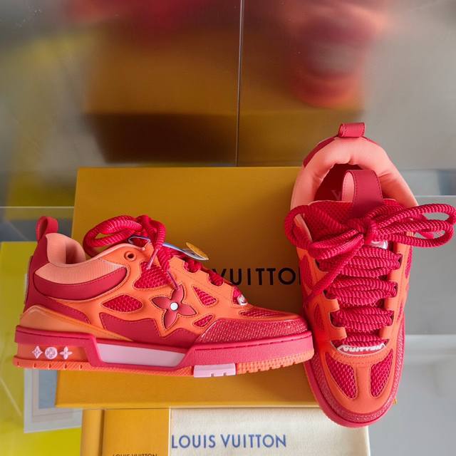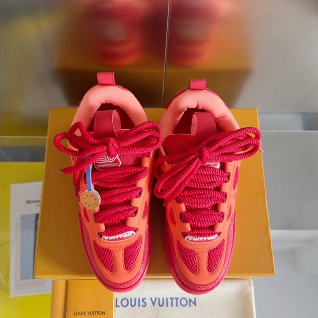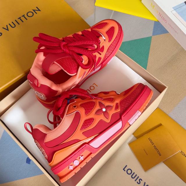 工厂 原版开发 品质出货欢迎对比 Lv板鞋系列Lv Trainer Maxi运动鞋将成衣系列的宽松廓形引入virgilabloh笔下的lvtrainer运动鞋设