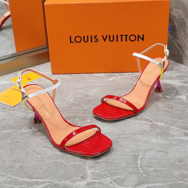 / 工厂价 女装女鞋 运动原单 LOUIS VUITTON 路易威登 新款一字带凉鞋鞋面:羊猄 漆皮内里:羊皮 鞋底:意大利真皮大底 跟高:7.5cm 9.5cm码