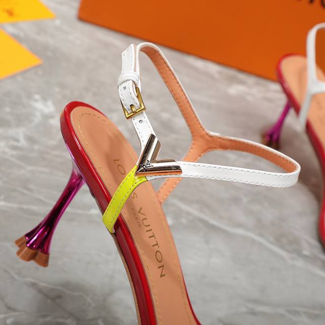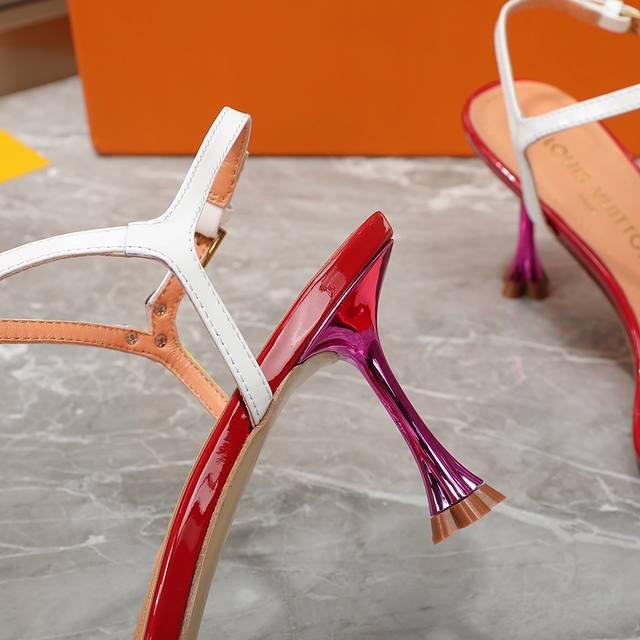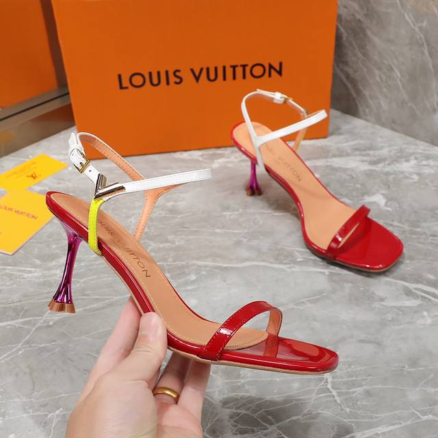 工厂价 女装女鞋 运动原单 LOUIS VUITTON 路易威登 新款一字带凉鞋鞋面:羊猄 漆皮内里:羊皮 鞋底:意大利真皮大底 跟高:7.5cm 9.5cm码