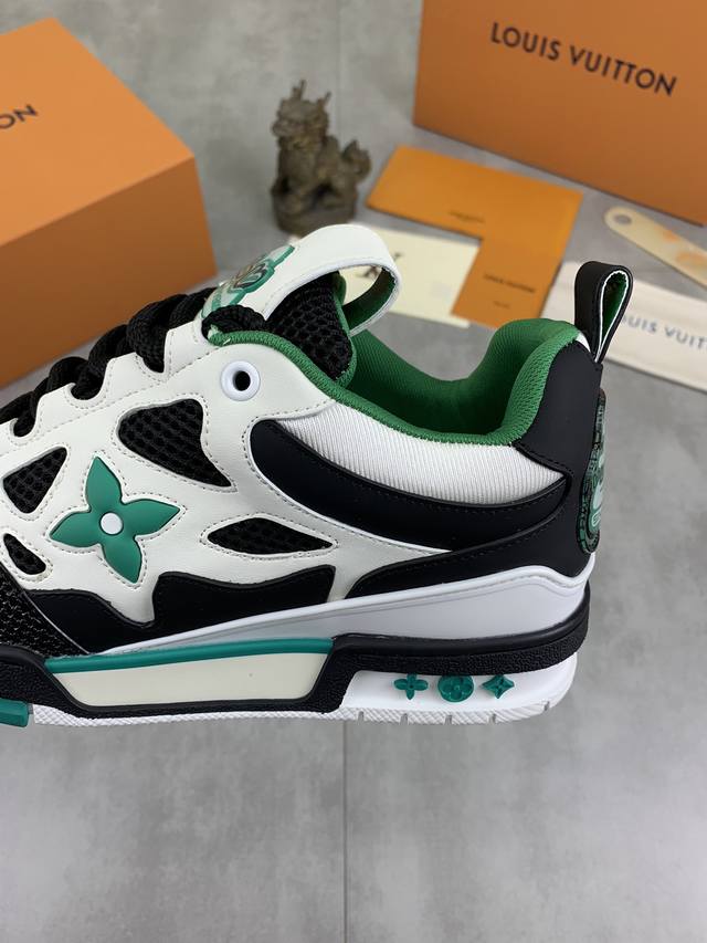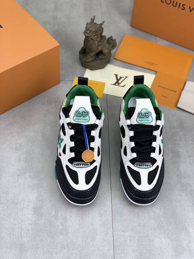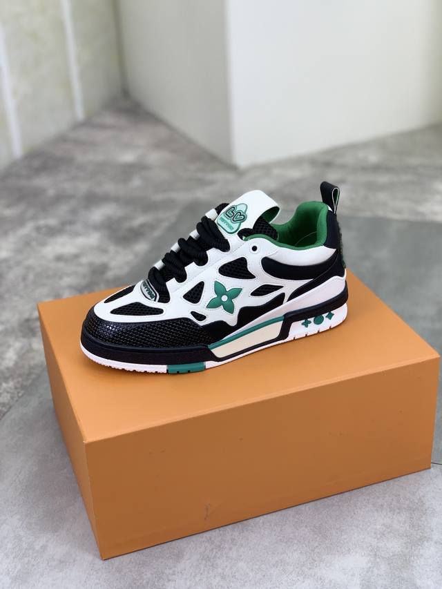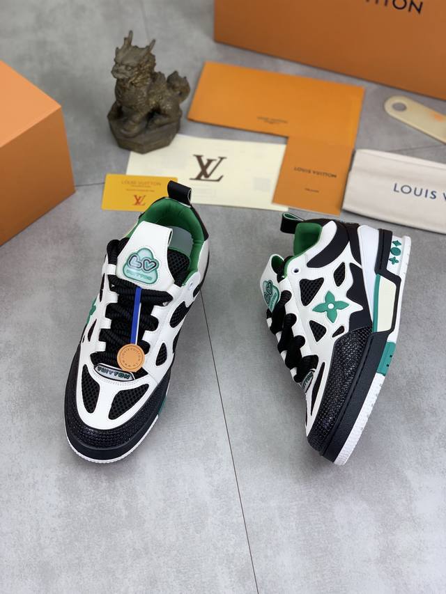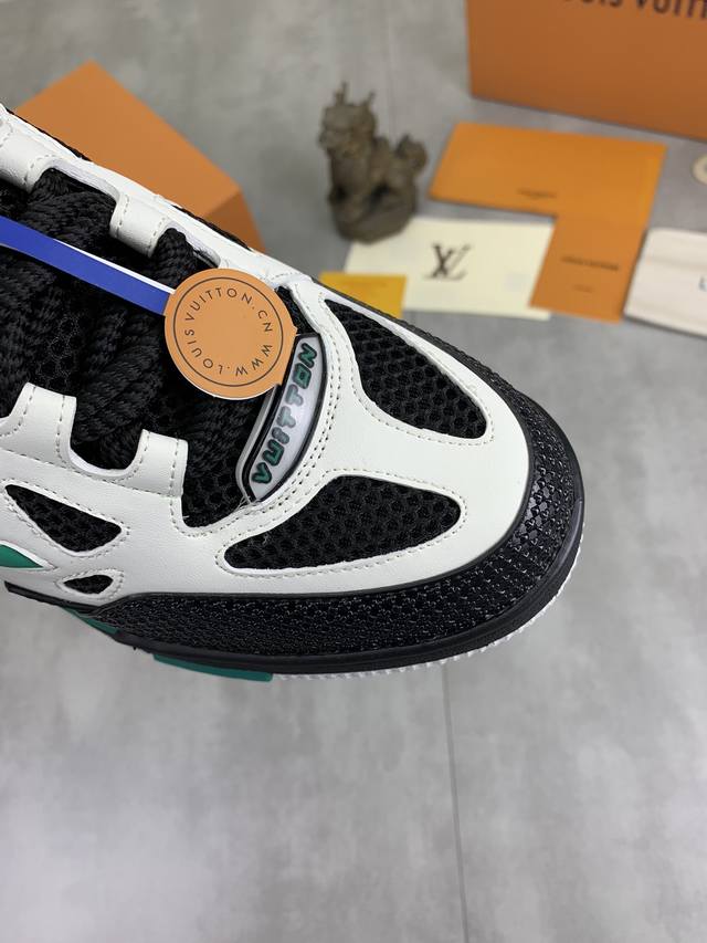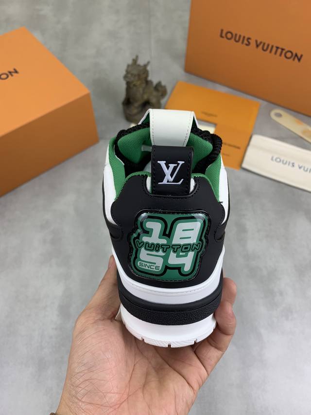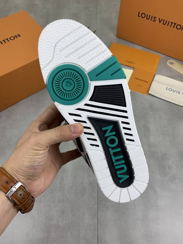 工厂价 实价 新款lv Trainer 系列运动鞋出货,本款 Lv Trainer 运动鞋以正绒面和粒面牛皮革重绎 Virgil Abloh 的经典之作,再为同色系橡胶外底点缀 Monogram 花卉。变形 Monogram 花卉栖身侧面,与后部不对称 Louis 和 Vuitton 标识互为映衬。初代构型出自 Virgil Abloh 之手,展现复古篮球鞋的灵感启发。鞋舌和鞋面饰有 Lv 字母,侧面饰有手写体路易威登标识,后部饰有 #54 标识,橡胶外底饰有 Monogram 花卉,并延续创新凝胶外底带