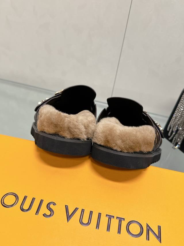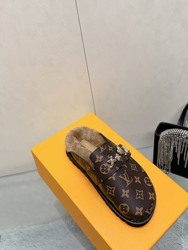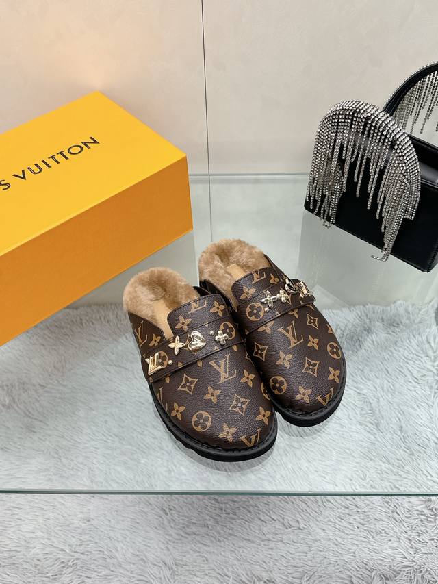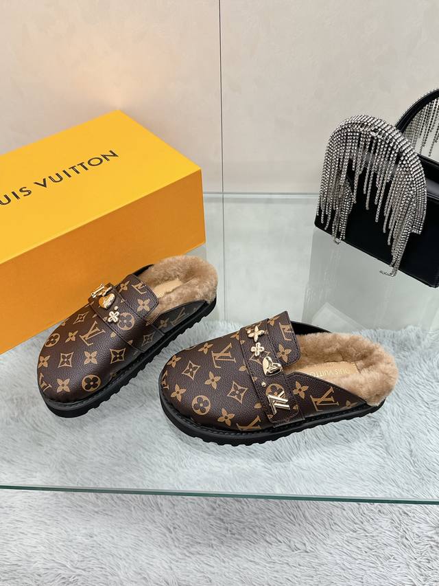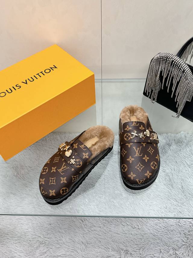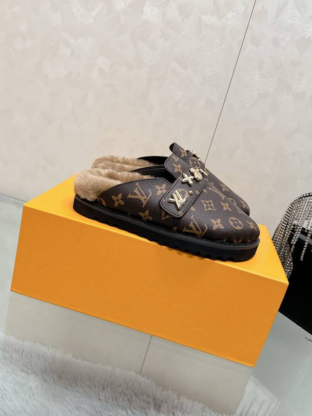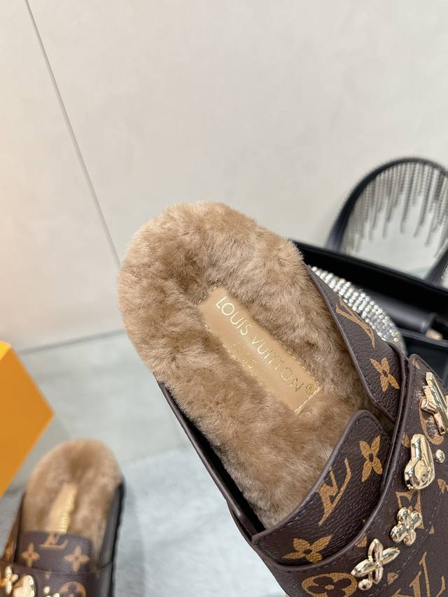 Lv专柜新款毛拖 百分百真皮真羊毛