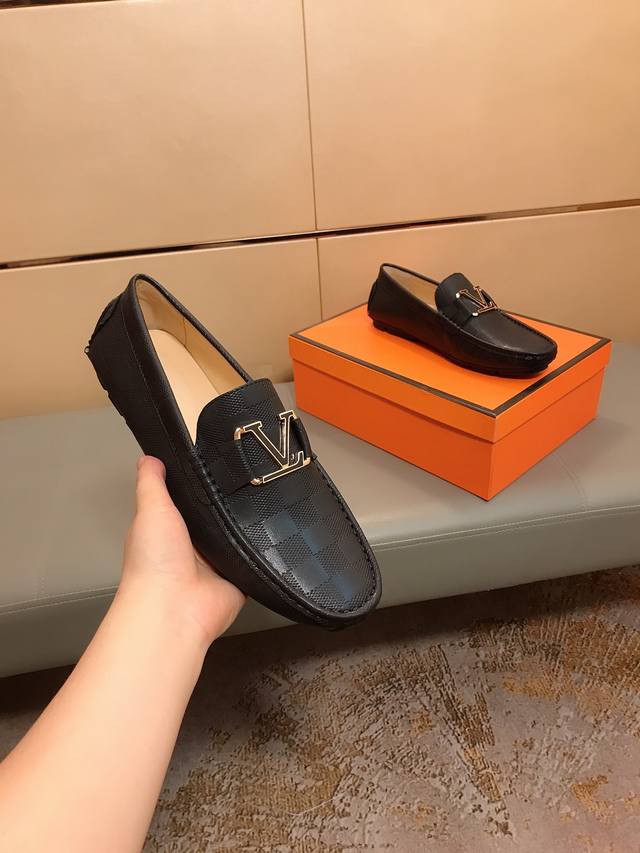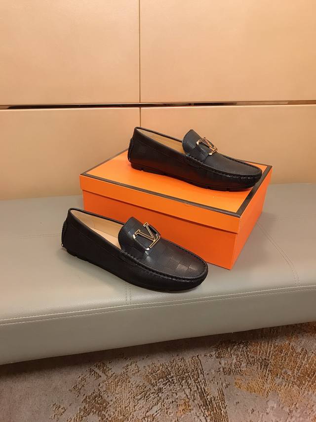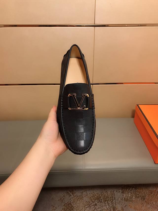 工厂价 新款更新 Lv路易威登 新款男士时尚豆豆鞋,采用进口意大利牛皮压纹,羊皮内里,做工精细,高端大气。有时尚典范造型。橡胶耐磨防滑大底,穿着舒适,值得拥有。码数:38-44
