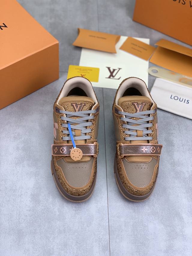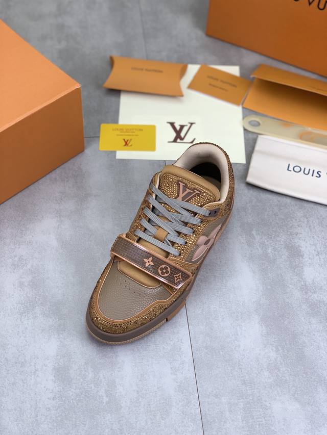 / 工厂价 顶级版本 烫钻系列 Louis Vuitton 原单 最新款lv路易威登 * 顶级版本 Lv经典潮鞋!选用进口原版牛皮 水染牛皮内里.原版耐磨轻便发泡大