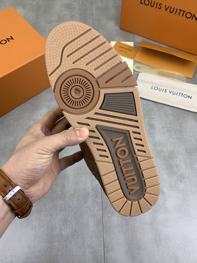 工厂P价P: 飞机盒10 原版开发 品质出货 欢迎对比 Lv板鞋系列 Lv Trainer Maxi运动鞋将成衣系列的宽松廓形引入Virgilabloh笔下的L