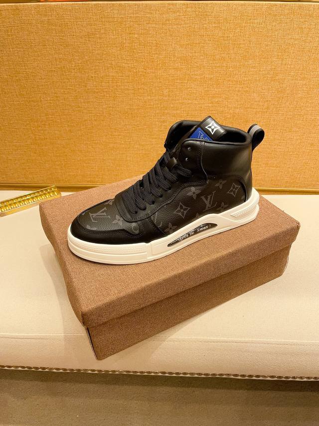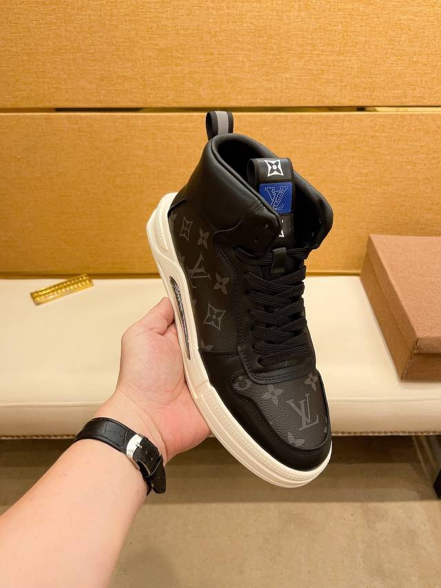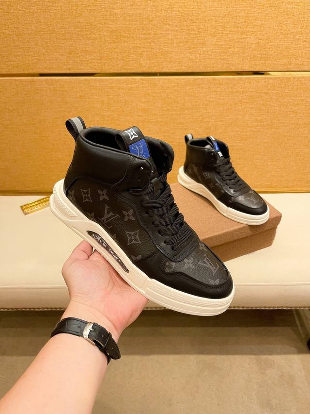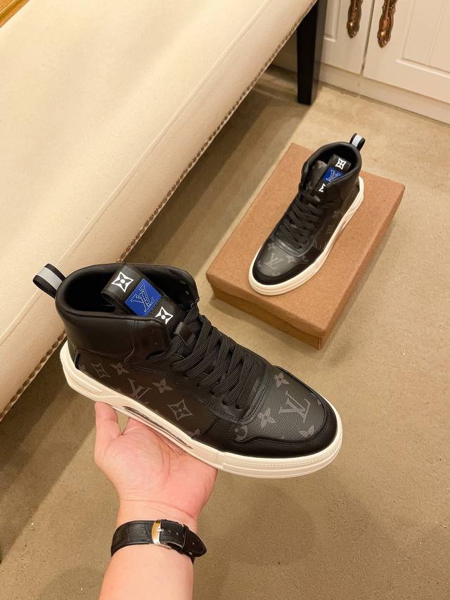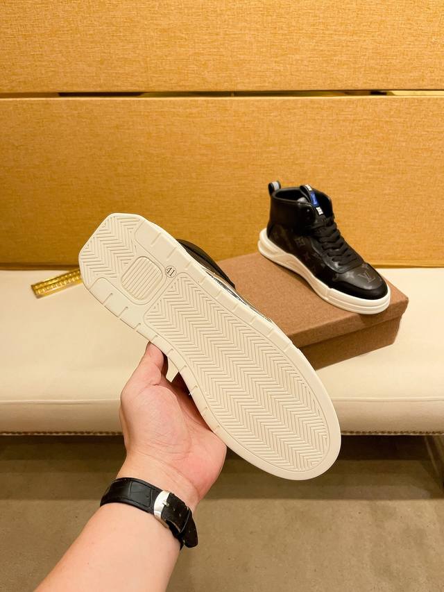 工厂价 高帮 Lv 路易威登顶级新款专柜同步发售,鞋面意大利进口头层牛皮。全进口真皮内里,完全1比1复刻,鞋底:原厂特供原版底,独家活动成型底超级舒适,原厂跟单货,高品质,可随意进出专柜,欢迎对比。码数:38-44