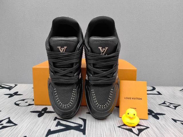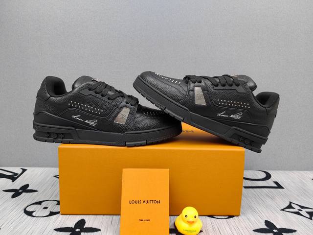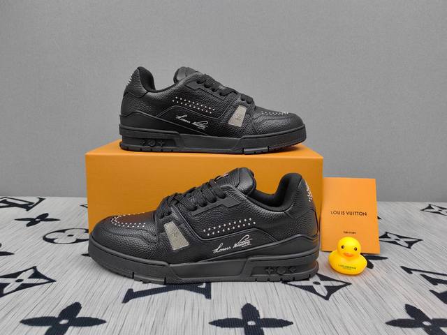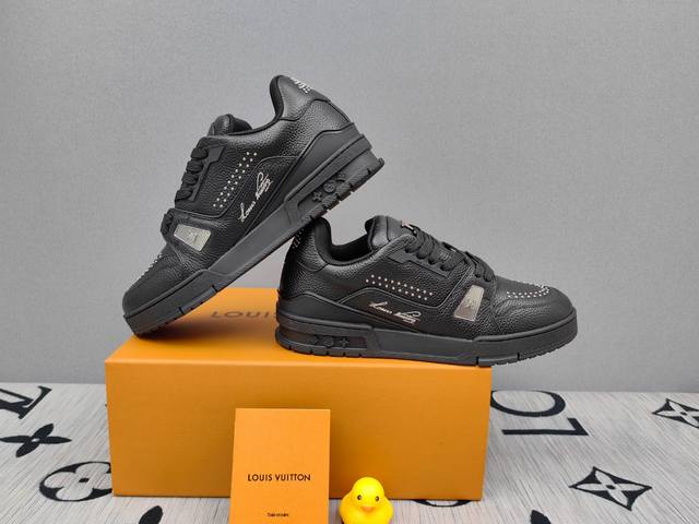 工厂价: Iv Trainer 男士运动鞋,全新配色,本款 Ivtrainer 运动鞋为粒面牛皮革渲染缤纷色调,鞋面点缀铆钉装饰,侧面点缀手写体路易威登标识,与后部西部风格的 Vuitton标识相映成趣。原版构型出自 Virgil Abloh 之手,展现复古篮球鞋的灵感启发。延续繁复鞋面,注胶橡胶外底延续标志性元素,鞋舌和侧面饰有i字母,后部饰有vuitton 标识,外底饰有 Monogram 花卉,侧面饰有手写体路易威登标识,标配鞋垫延续舒适体验。配原盒全套包装