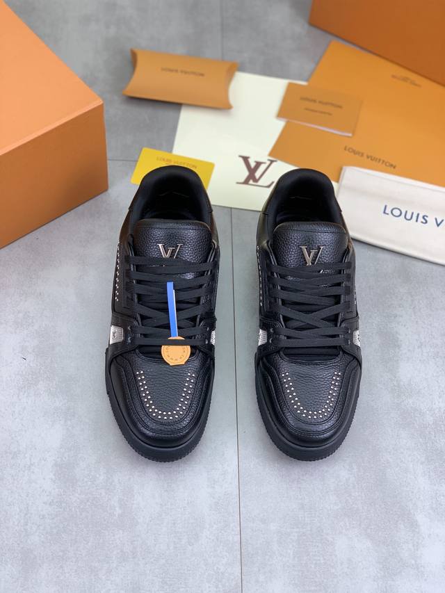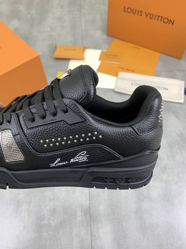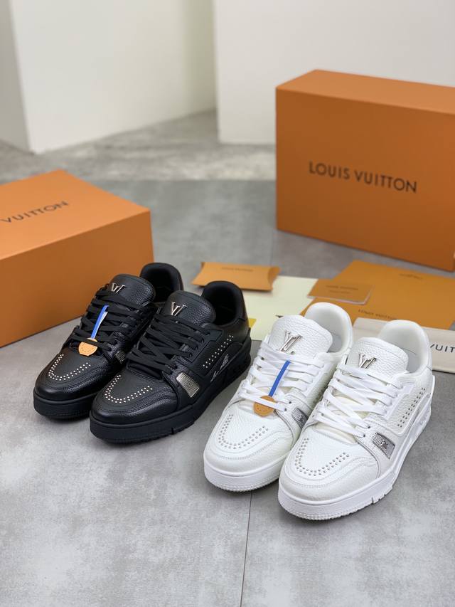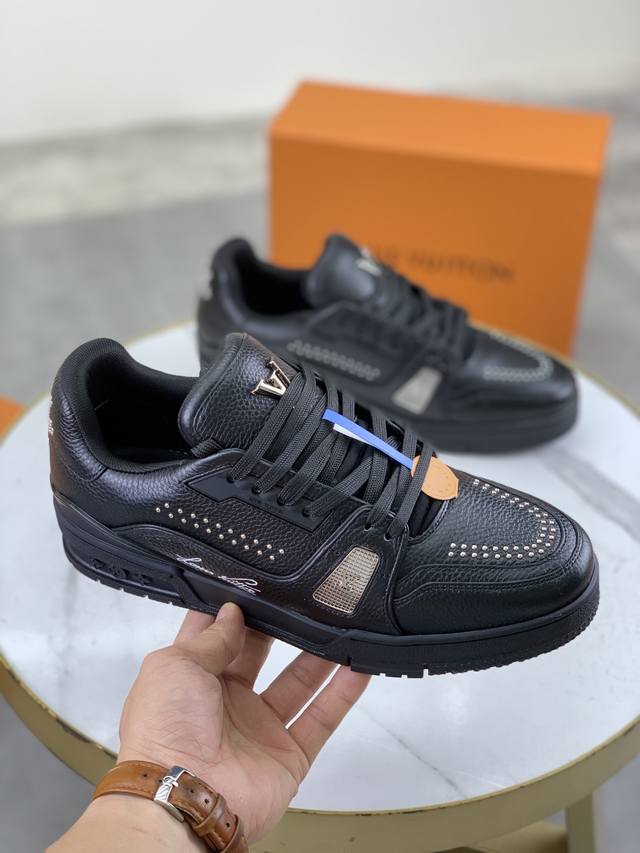工厂价 L. V Trainer 运动鞋 重工打造特别版 采用水染小牛皮水洗工艺,精致单品,后部 #54 标识遥望品牌诞生的 1854 年,男装艺术总监 Vir
