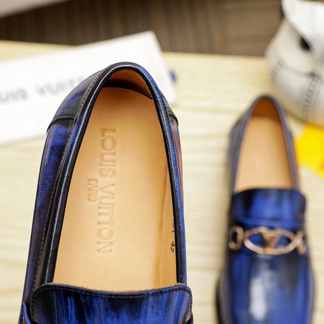 工厂价 LOUIS VUITTON 里 路易威登 新款男士休闲商务皮鞋官网原版复制,鞋面采用进口官网1:1材料制作意大利牛皮面,水染内里绝非一般的工艺制造,大厂