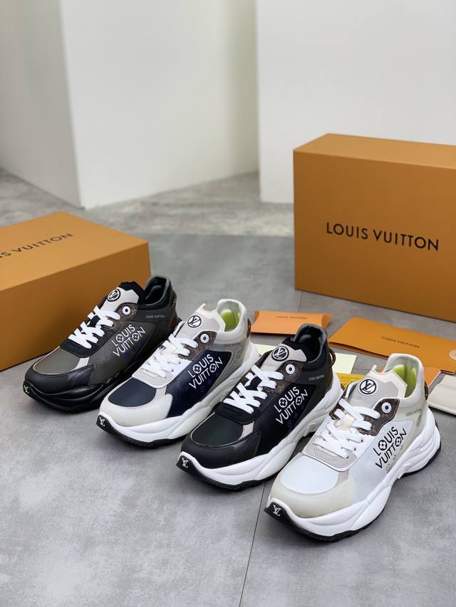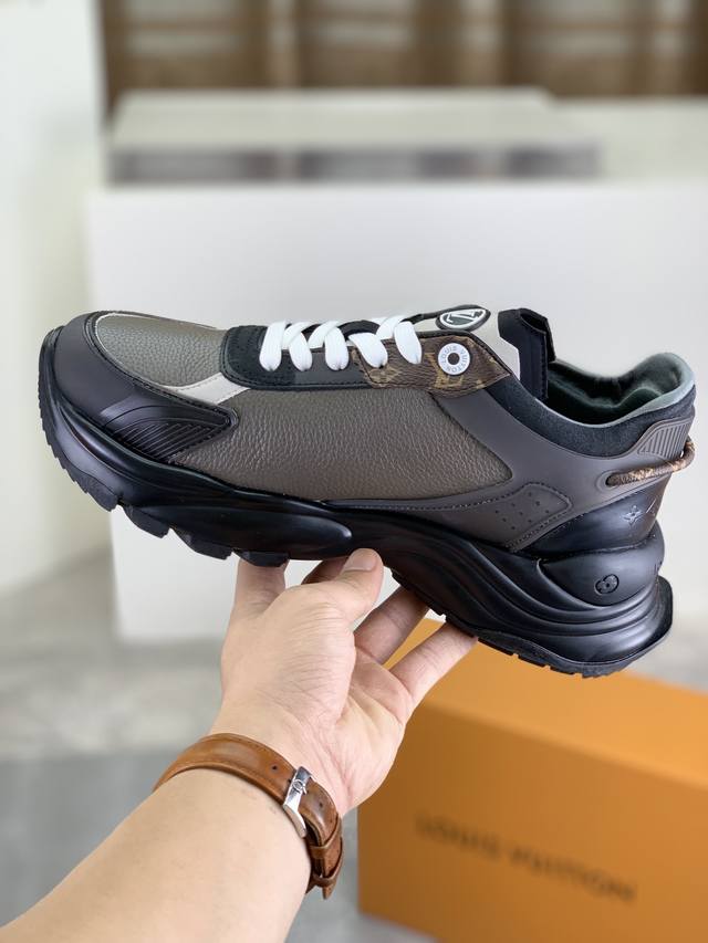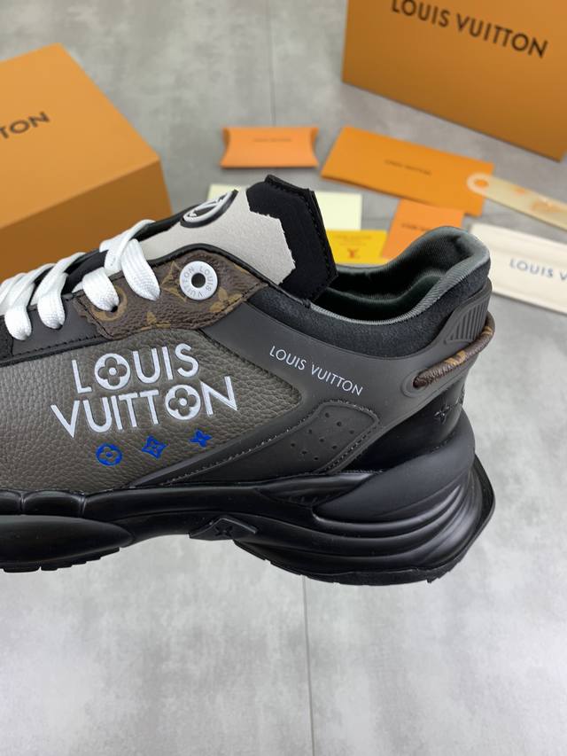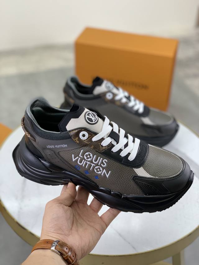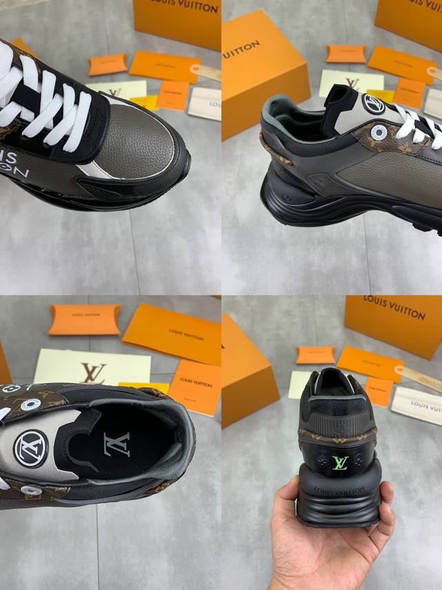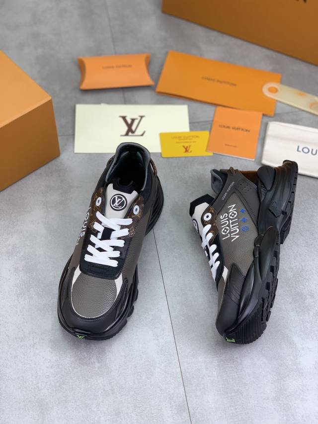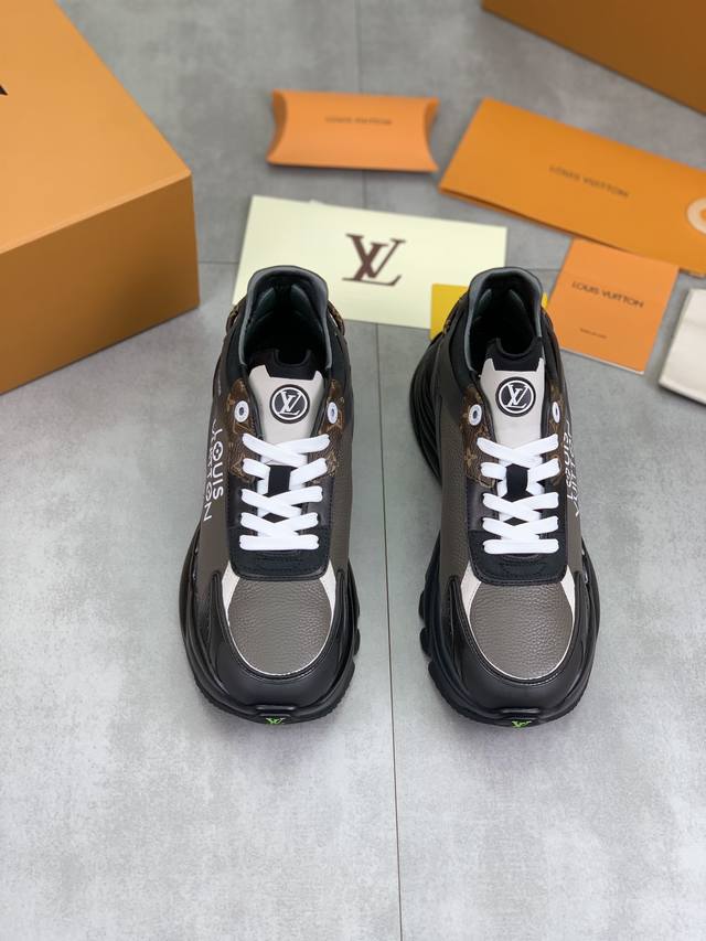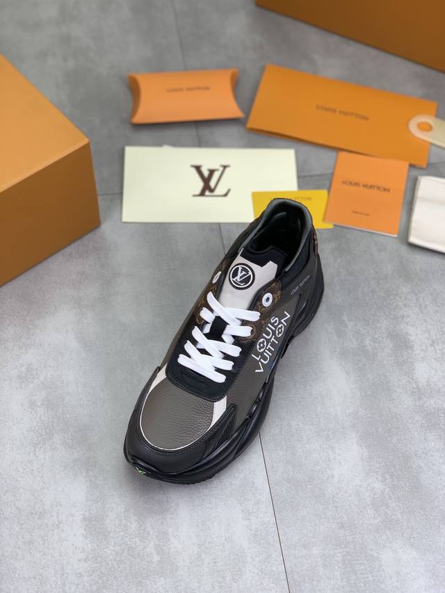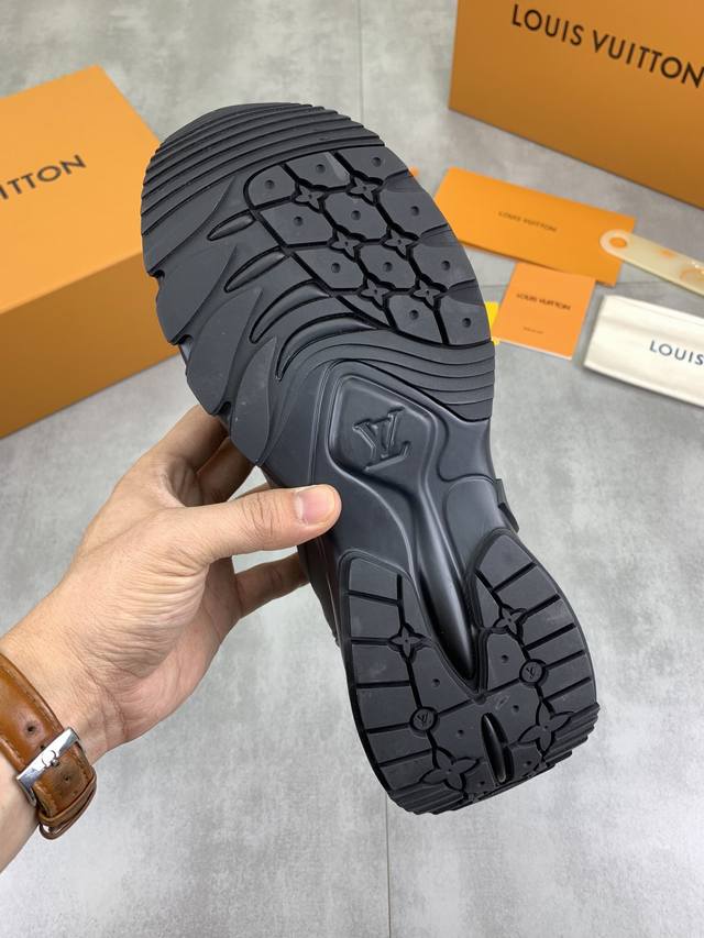 本款 Lv Rush 运动鞋为科技网格融入金属元素,彰显运动美学和越野运动鞋的灵感启发。弹力鞋带和金属套索扣方便穿脱,橡胶monogram 图案和 Lv Circle 标识栖身侧面,原版定制进口科技面料进口透气网里,防滑tpu大底,高品质单品!