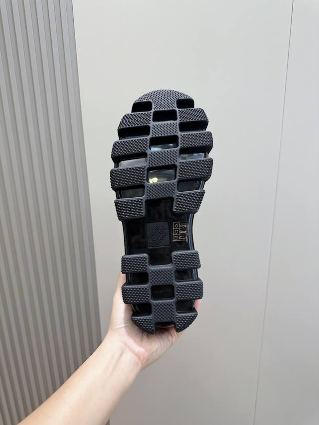 橡胶外底,鞋底凸纹饰有 Damier 图案marque L. Vuiton Deposee 标识