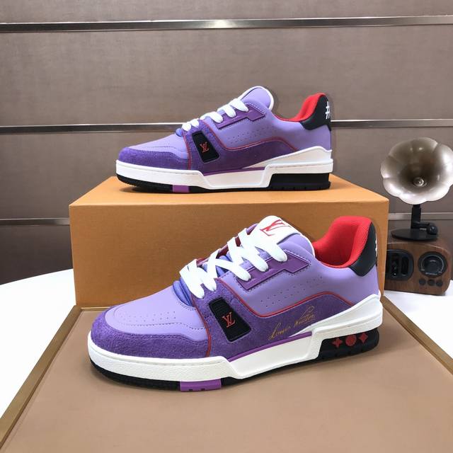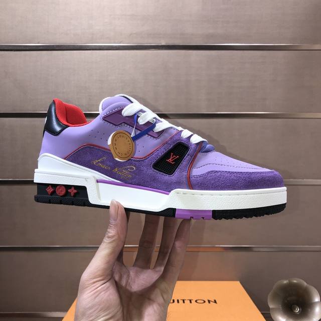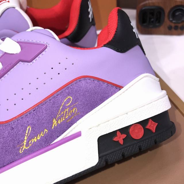 Lv Trainer Maxi运动鞋将成衣系列的宽松廓形引入virgilabloh笔下的lvtrainer运动鞋设计,春夏男装秀场瞩目亮相 牛皮革鞋面结合粗犷织物鞋带,以缤纷串珠点明品牌经典元素 Lv字母标注鞋舌,Monogram花卉栖身外底 混合材质