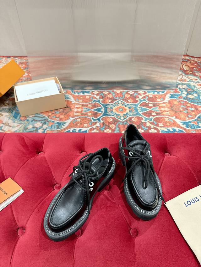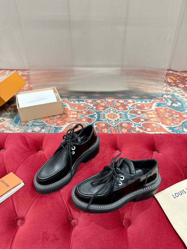 Lv路易威登 驴牌L家 秋冬走秀款 玛丽珍 一脚蹬 懒人 厚底 乐福鞋 厚底跟高版型设计非常显得腿长 可以穿搭优雅气质服饰 模特搭配 网红大爱款 独特的设计风格