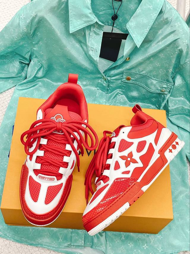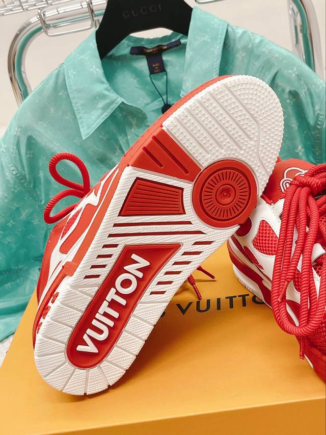 顶级版本 带芯片 Lv驴牌l家23春夏走秀款 胖trainer 面包鞋 滑板鞋 休闲 情侣款 运动鞋 Diy串珠 Louis Vuitton 路易威登年男装春夏