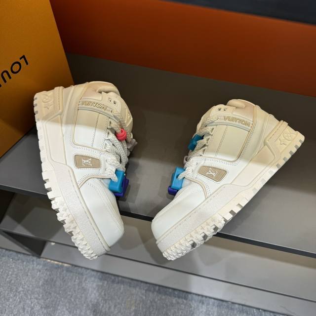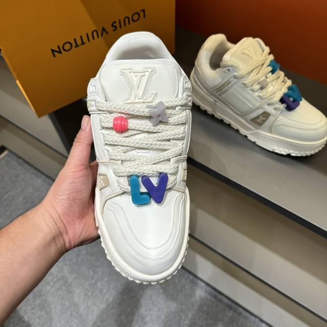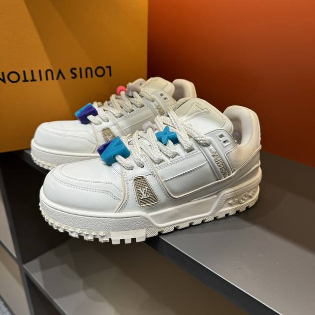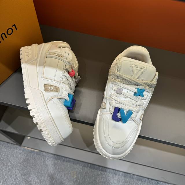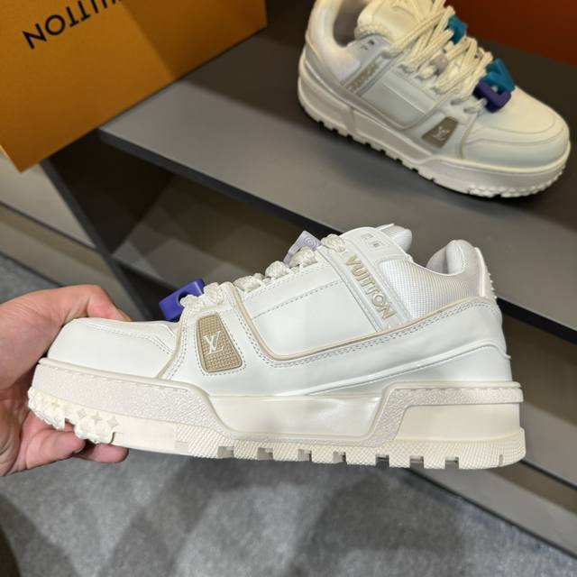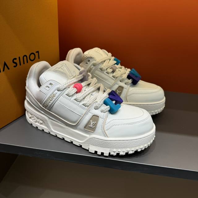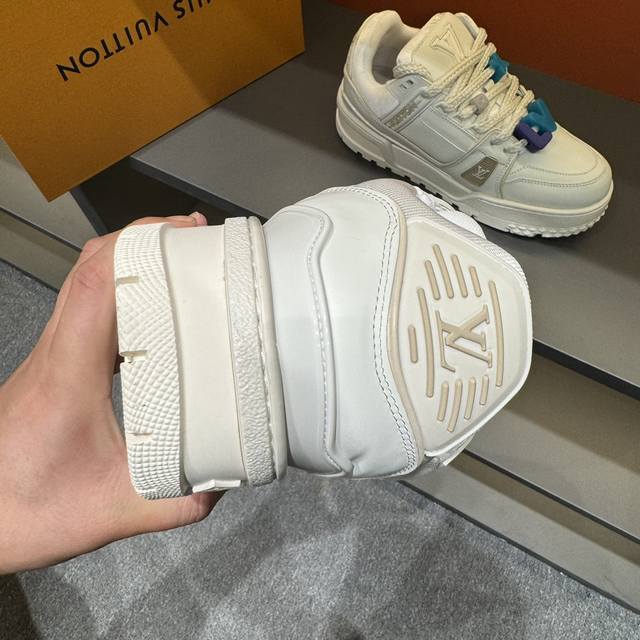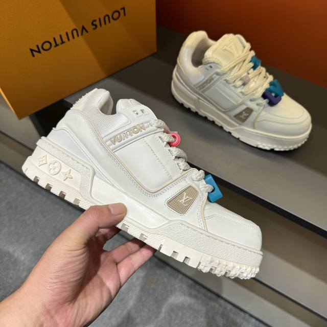 码数38-45L Trainer Maxi小胖丁休闲运动鞋,情侣款本款 Lv Trainer Maxi 运动鞋出自 2024 早秋系列,为粒面牛皮革融入斑斓 D