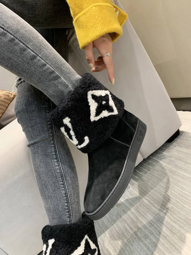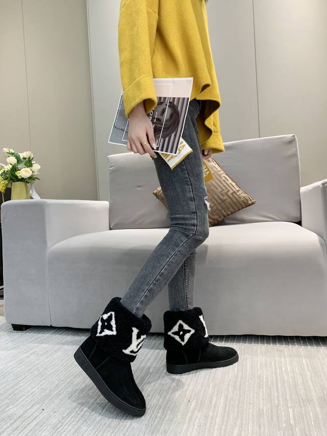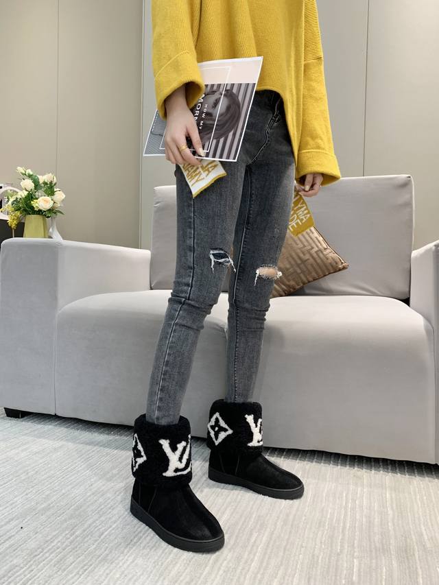 经典Lv款雪地靴。纯手工拼接面料,每对鞋都耗时耗料,里垫全羊毛。35 40码 41 42订做 。