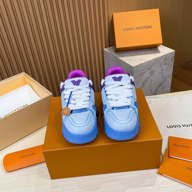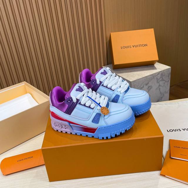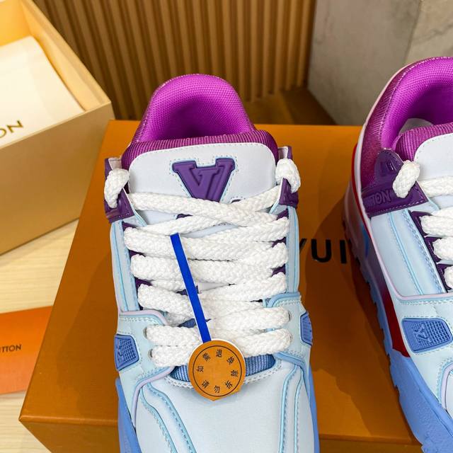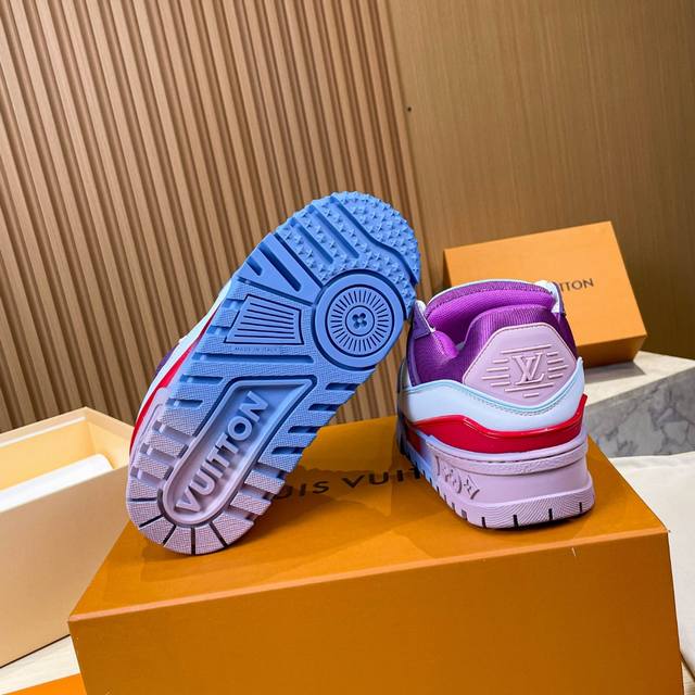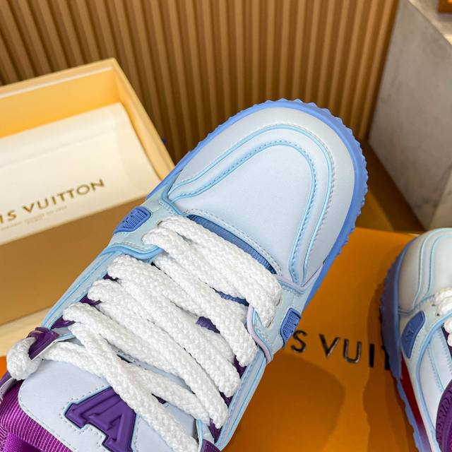 Louis Vuitton 2024年春夏秋冬走秀款,这双“变胖’了的trainer好受瞩目立体饱满的彩色鞋身,搭配鞋带上的撞色字母和logo,整只鞋看起来好像橡皮泥捏的一样,在潮酷之间充满了童心