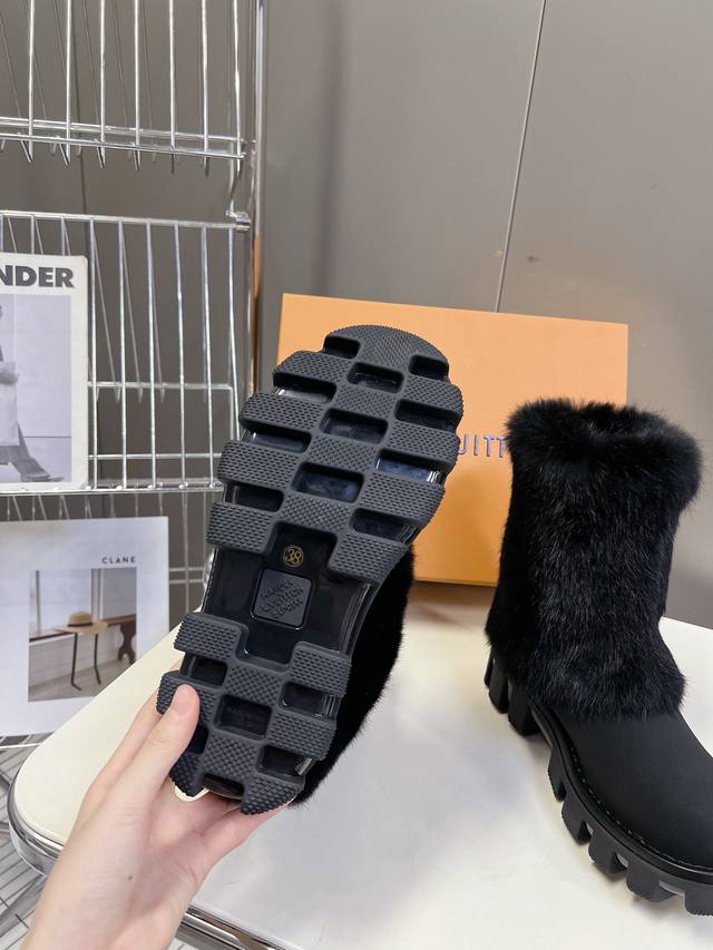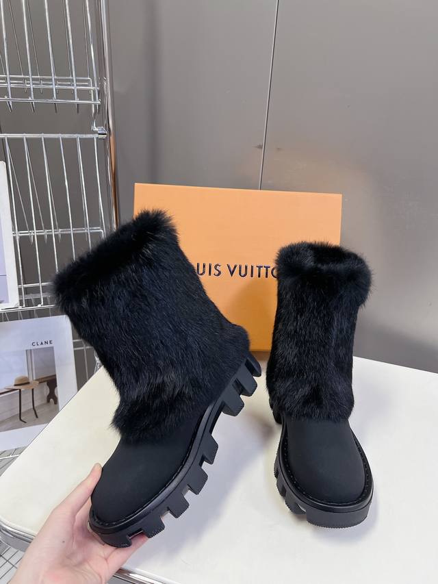 路易威登 Lv 专柜同步系列新款厚底情侣款毛里马丁靴潮气逼人 尽显青春活力,日常穿搭超级抢眼,经典的拱形设计,一向被称之为美腿神器!绝对的人手必备 真羊毛里