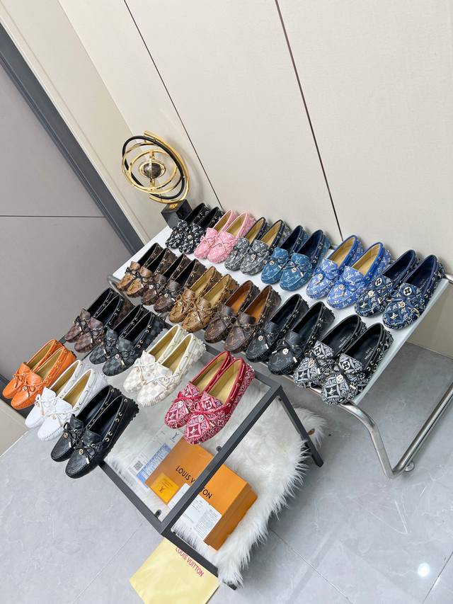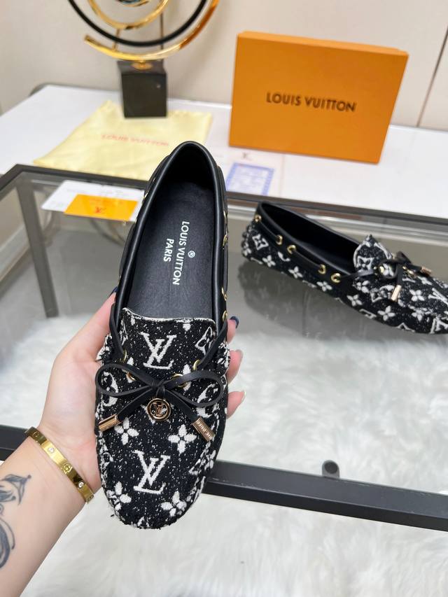 顶级代购货高版本Lv休闲鞋,专柜2024春夏秋新色豆豆鞋、进口布料 饰扣蝴蝶结,经典爆款单鞋。里垫:牛皮内里 。 女款:35-40 41.42定制 。