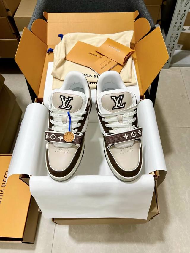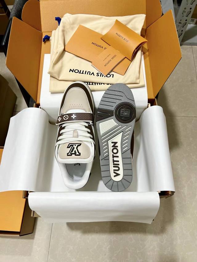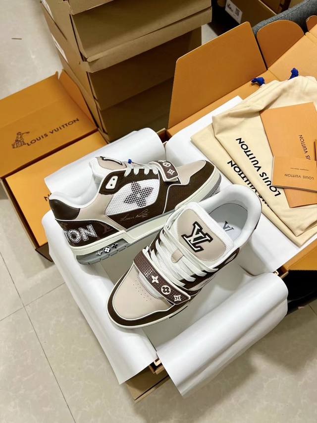 顶级版本原版复刻lv Trainer 运动鞋是路易威登艺术总监virgil Abloh对复古篮球鞋的解读,印花完美对称由不同色调打造外底饰有monogram花卉
