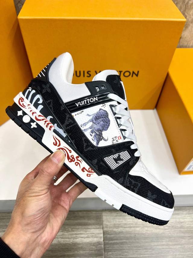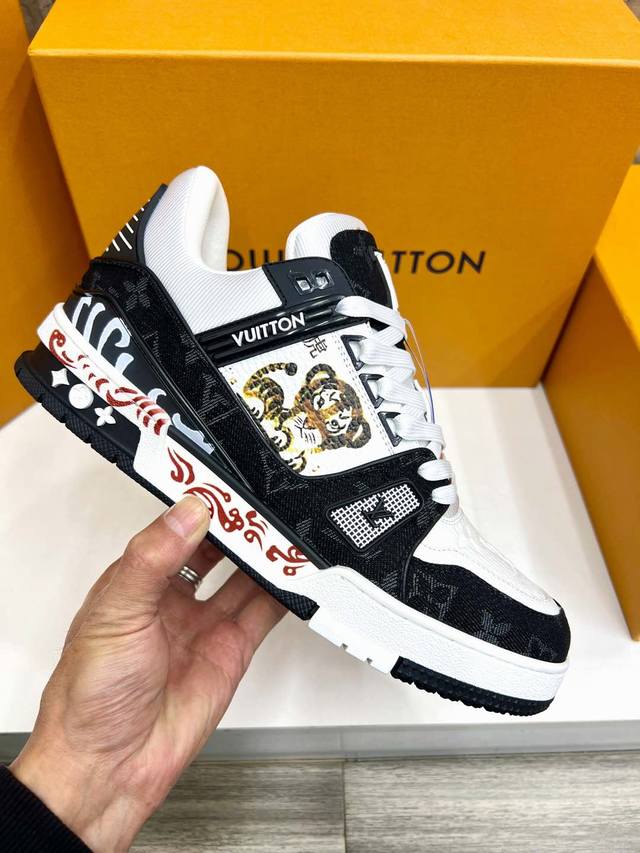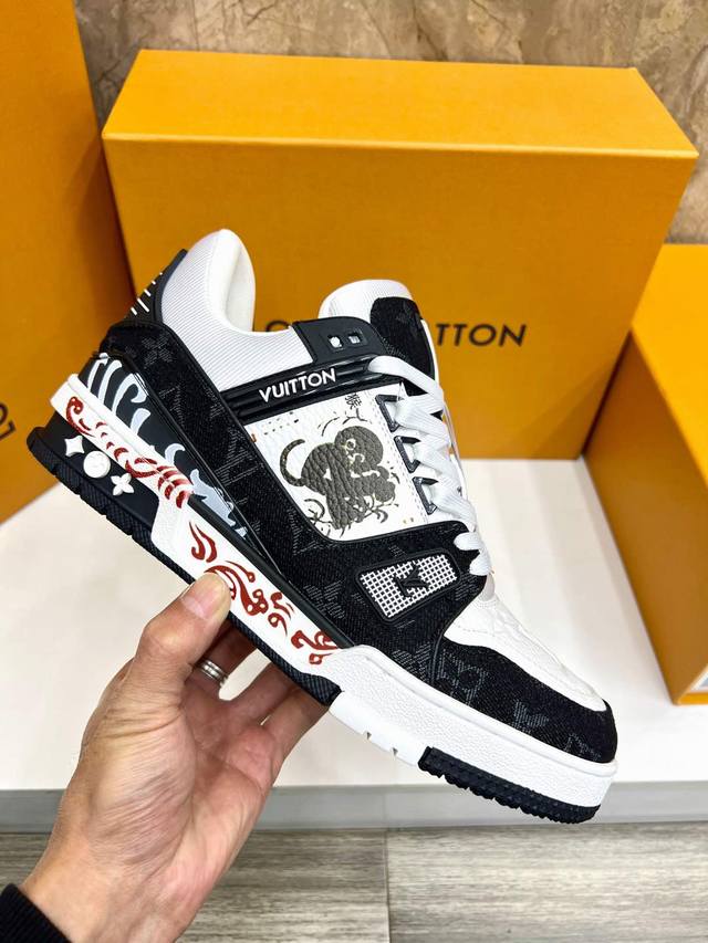 出厂价 原版开发 品质出货欢迎对比 Lv板鞋系列Lv Trainer Maxi运动鞋将成衣系列的宽松廓形引入virgilabloh笔下的lvtrainer运动鞋