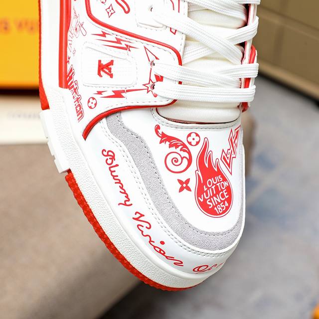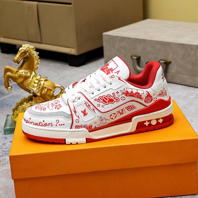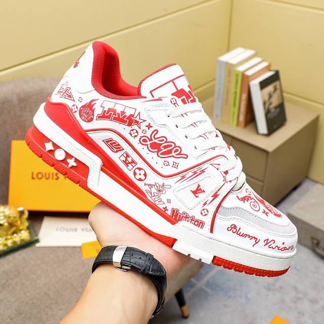 / 顶级版本 LV-路易-威登 休闲运动鞋 原版1:1开发复刻!!上脚非常舒适 做工精细 鞋面由意大利进口头层牛皮,原牌网布pu垫脚,脚感超舒适。 原厂特供原版TP