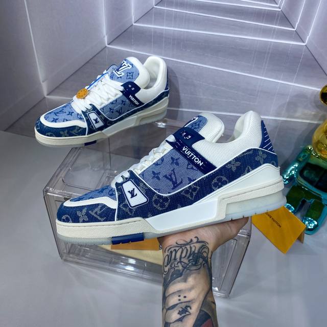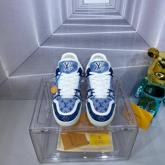 2024 路易威登走秀滑板鞋爆款, Louis Vuitton Trainer无疑是奢侈品牌推出的最成功的sneaker之一,不过探索的脚步并不会停,Louisvuitton也将在年春季带来全新滑板鞋系列 图中新系列回到了90年代 Chunky Skate Shoes面包鞋既视感,皮革与网面打造鞋面,肥大的廓形与粗鞋带都非常惹眼,预计也会像trainer一样拥有相当多的配色 新款鞋底铆钉设计!新的潮流设计鞋子 Size:女35-40 男39-46