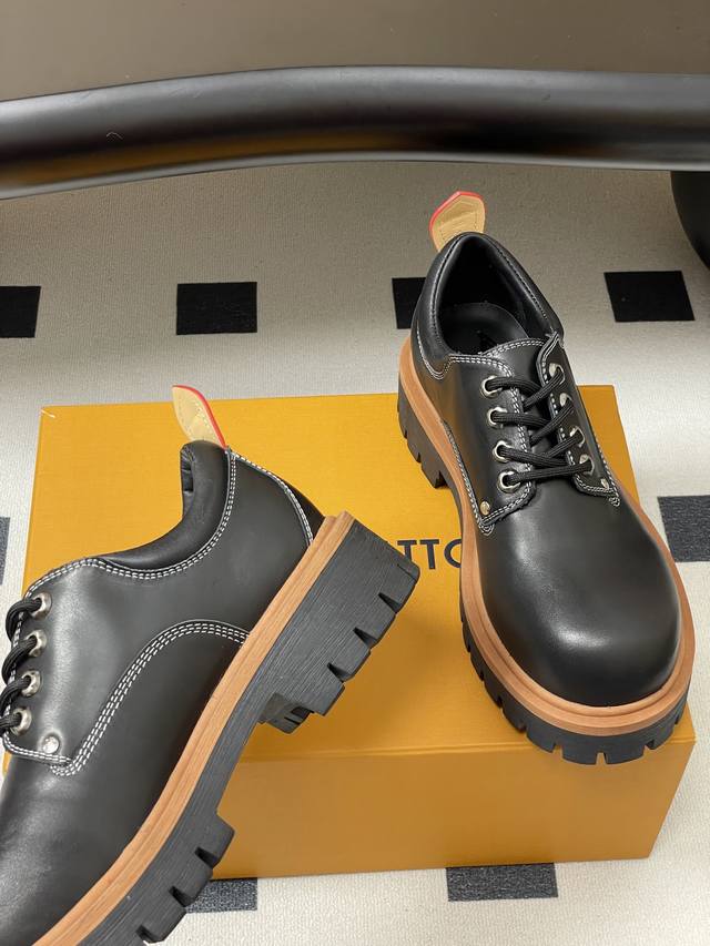 25Ss早秋新款Louis Vuiteeon Lv Bubble 系带鞋男士厚底小皮鞋经典老花 棋盘格乐福鞋 Lv Bubble 系带鞋取材光滑牛皮革,巧妙诠释