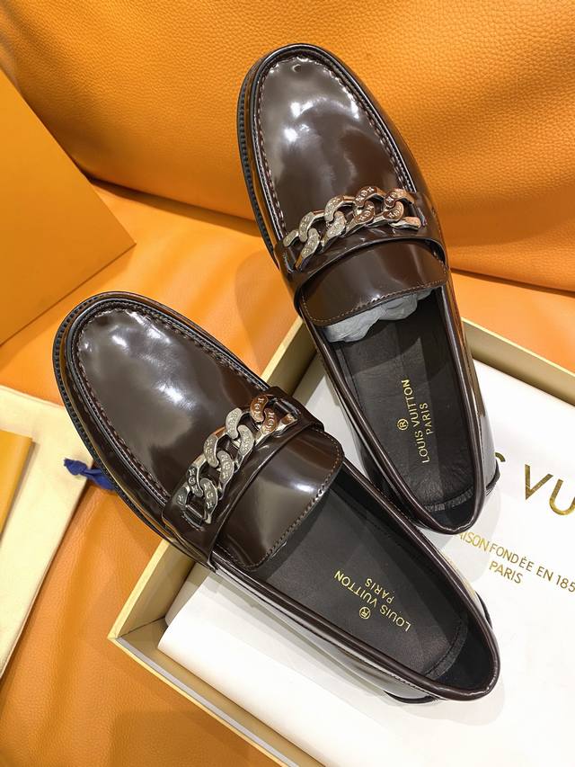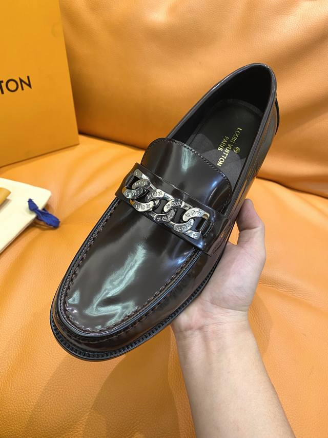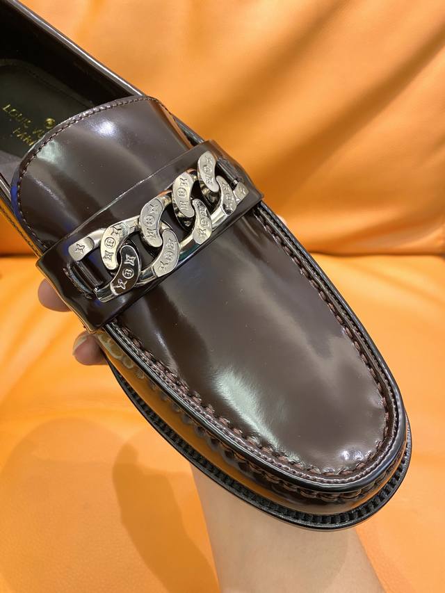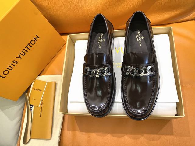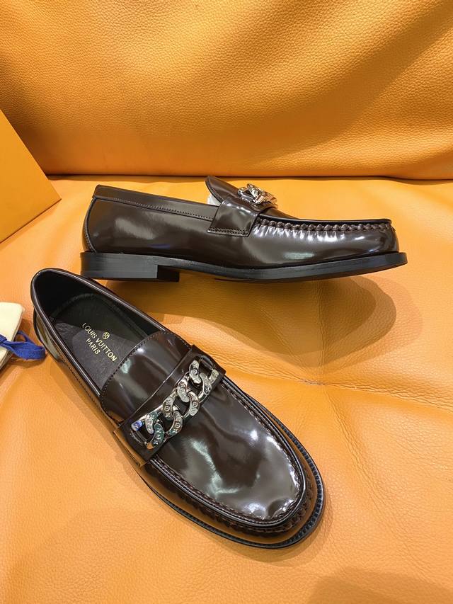 L家新品 Loui* 乐福鞋皮鞋 官方售价 Rmb,000 本款major乐福鞋正面选用monogram提花织物 拼接搭配皮革饰边 鞋面饰同色系皮革带 搭配金属l*V字母点缀传统手缝鞋面,内里黑色水染牛皮打造 脚感舒适亲肤 以潮流笔触升级传统设计 采用原版真皮大底 后跟外底饰有 Monogram花卉 前掌与后跟复合橡胶底片升级防滑性能提升舒适感