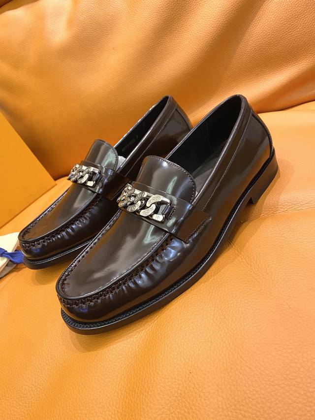 L家新品 Loui* 乐福鞋皮鞋 官方售价 Rmb,000 本款major乐福鞋正面选用monogram提花织物 拼接搭配皮革饰边 鞋面饰同色系皮革带 搭配金属