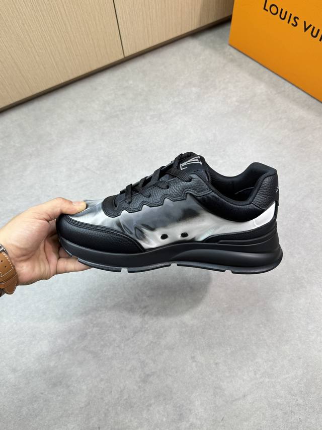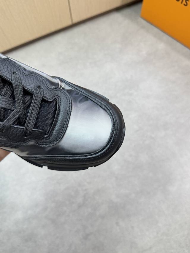 -鞋面:荔纹小牛皮、品牌幻彩品牌Pvc、鞋身车缝品牌图腾、鞋口.鞋舌:条纹高丝光布匹、鞋舌.后跟;丝印品牌Logo