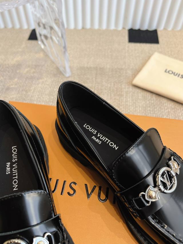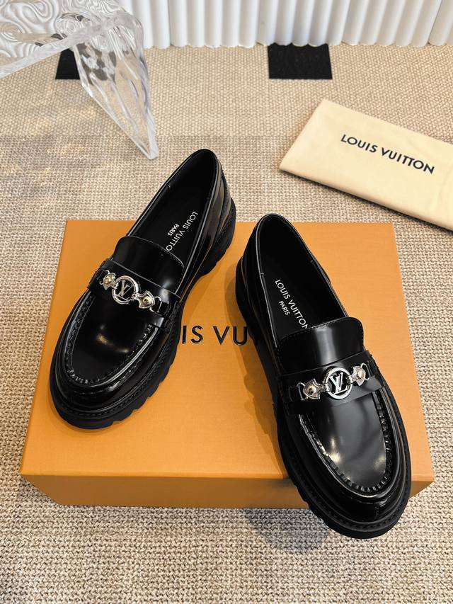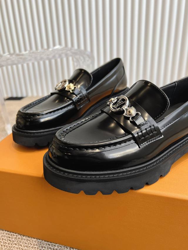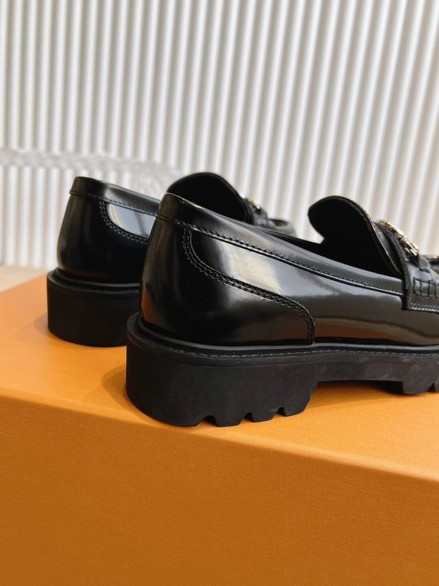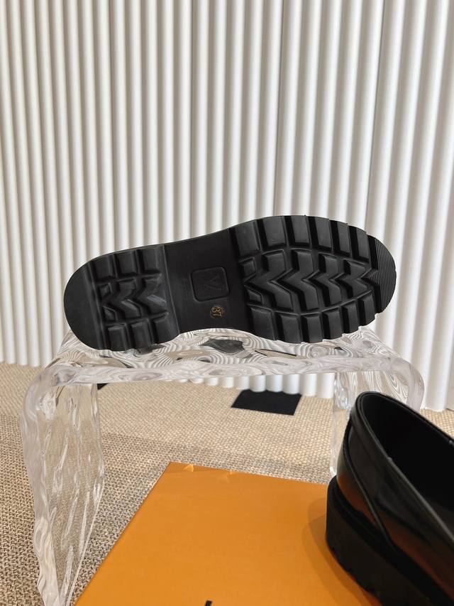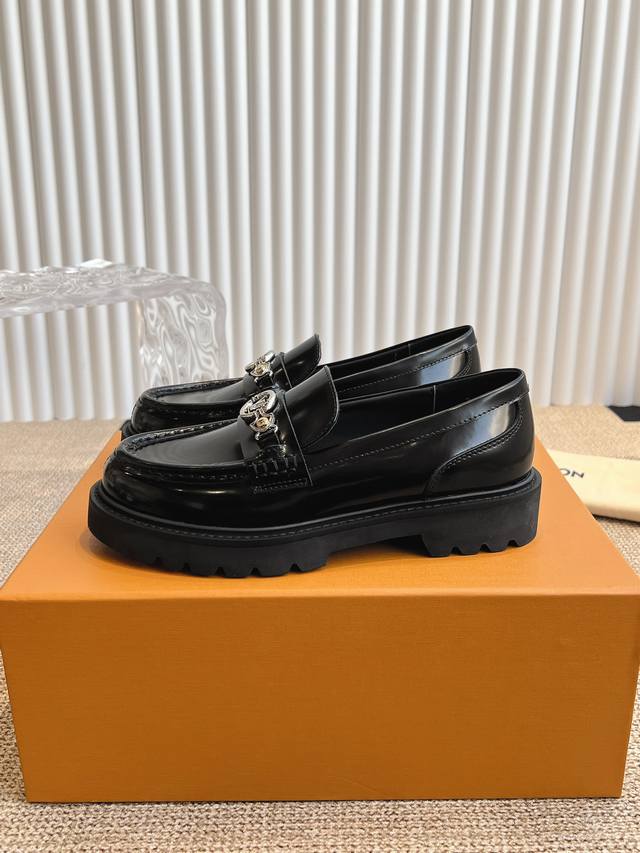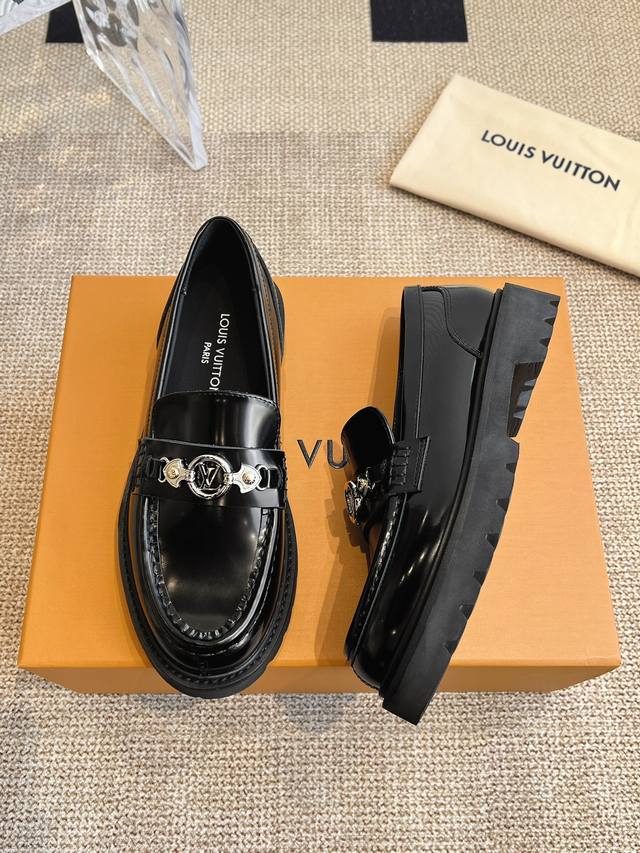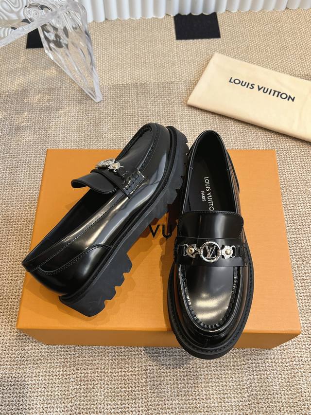 本款 Distric 乐福鞋以双色镜面牛皮革裁出轻盈舒适鞋身 厚实 Eva外底点缀醒目凸纹,亦刚亦柔的潮流姿态成就日常佳选 Iv Circle 标识点缀鞋面中央,金属链条再添莹泽光彩