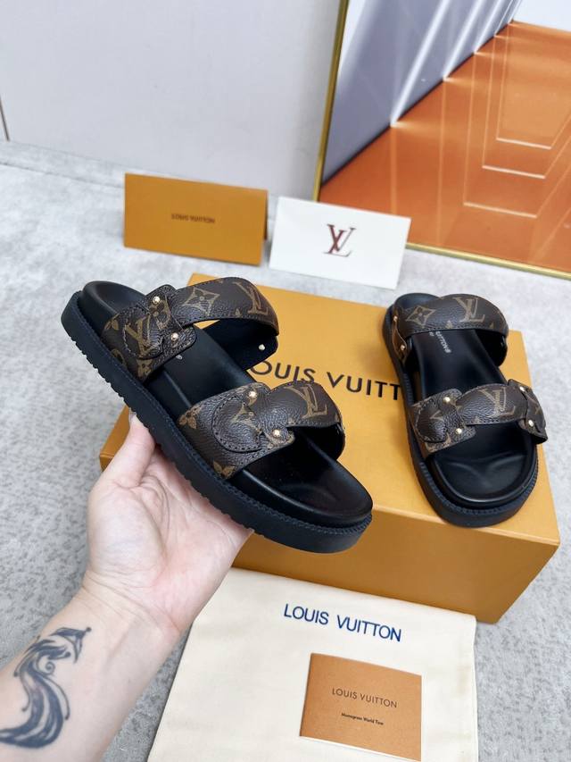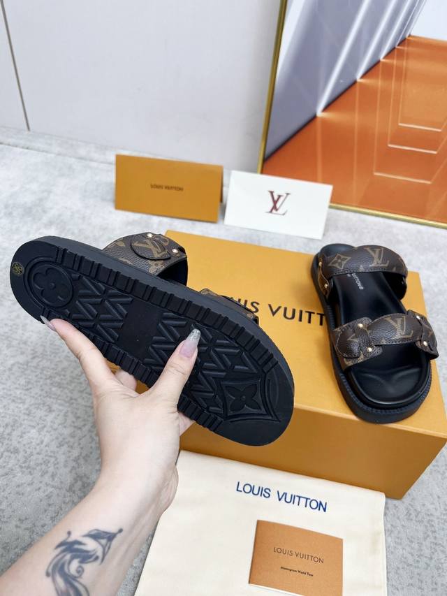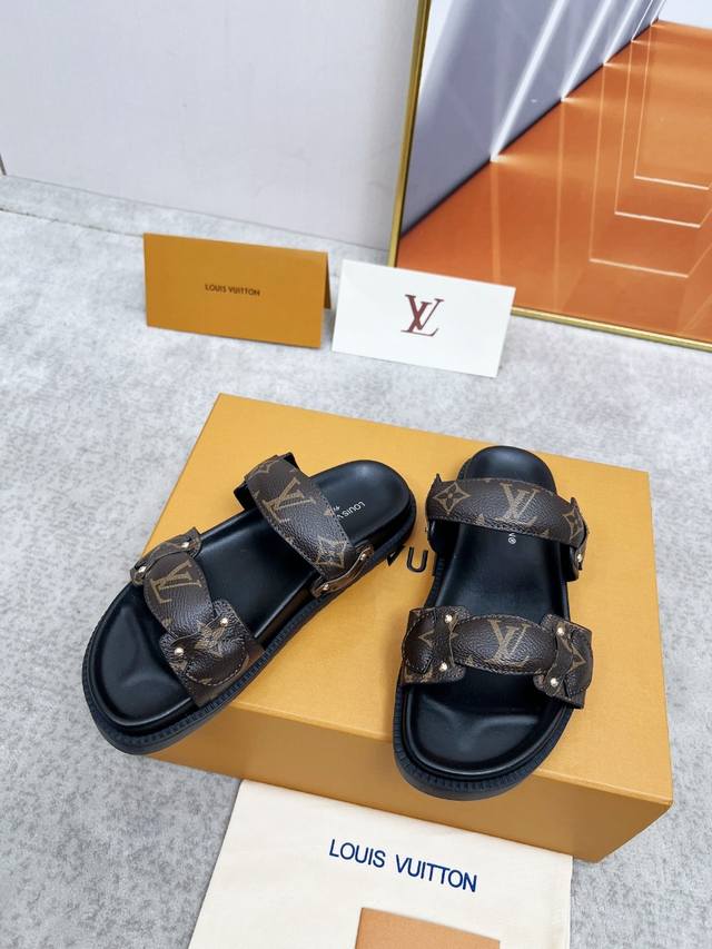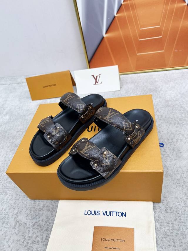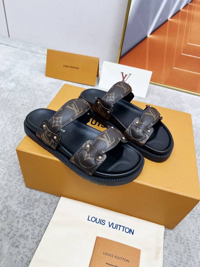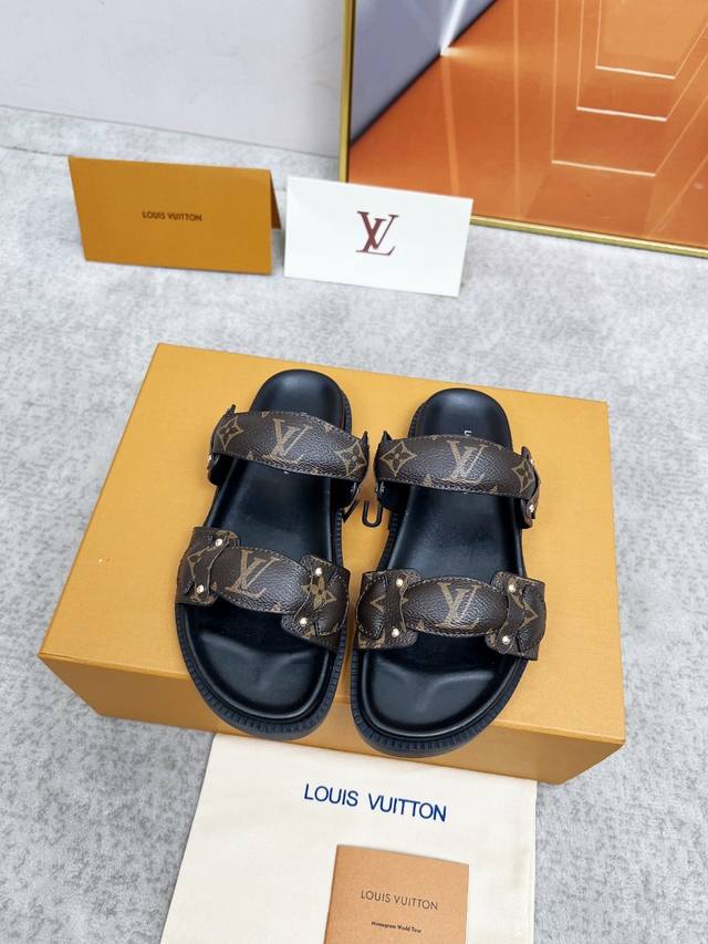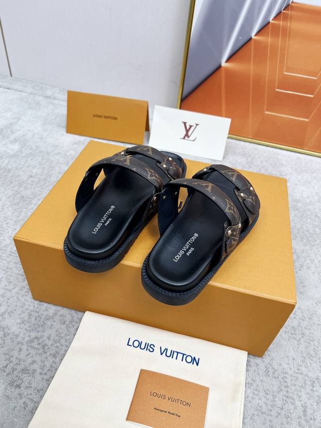 / louis Vuitton2025新款,路易威登春夏新款拖鞋火爆上市,1:1高级定制,秒杀一切仿品,原版开模Logo装饰,既时尚又美观,面料:进口牛皮,内里羊皮