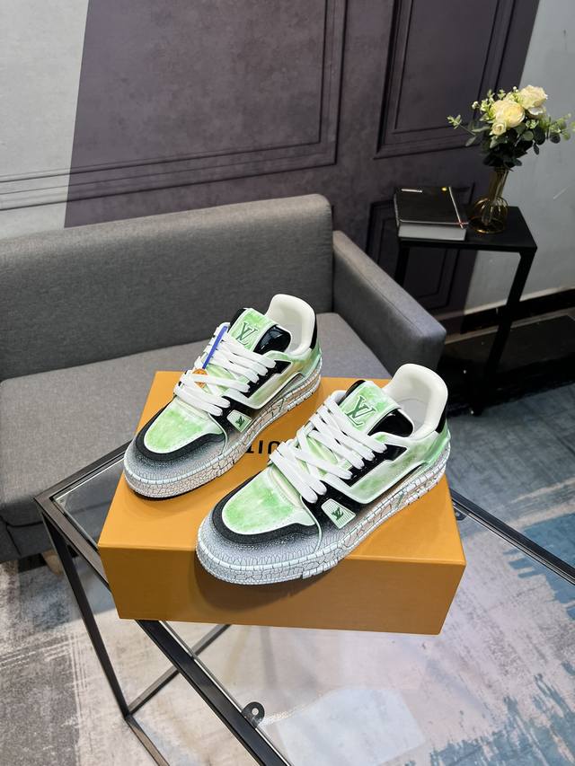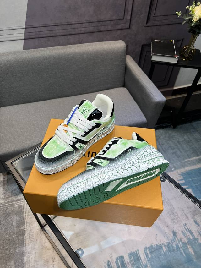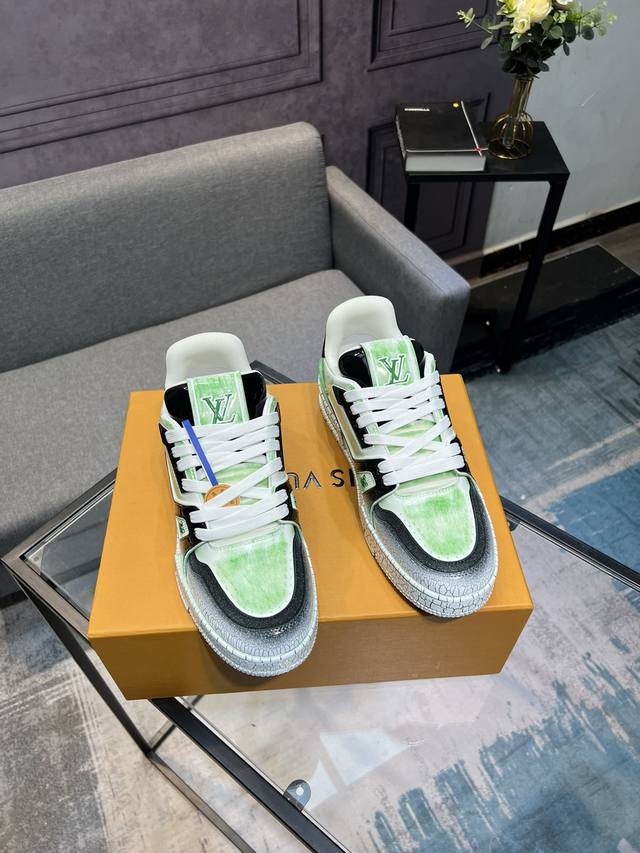 lv顶级版本 新款 代购品质lv~路易威登lv Trainer最好看的运动鞋,驴牌力推新品,官网限定款复古篮球运动鞋!高帮低帮均花血本购入原版1:1精准复刻、细