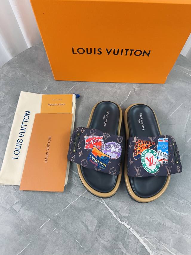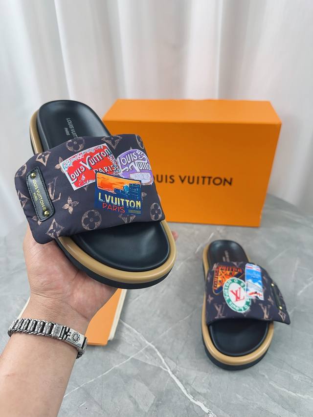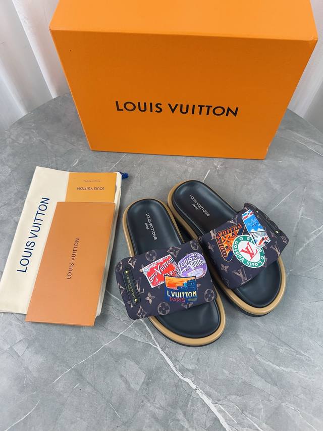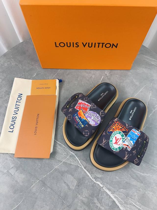 lv驴牌L家 爆款 浮雕Logo 压花 凉拖鞋 本款 pool pillow Comfort 平底凉拖取材科技织物,以高频压印技术重绎 Monogram 图案。柔软加垫鞋面搭配可调节魔术贴,舒适韧性鞋垫再添和谐色彩 面料: 原版定制科技织物 内里:柔软羊皮里 鞋底:原版开模橡胶发泡大底 Size: 35-45