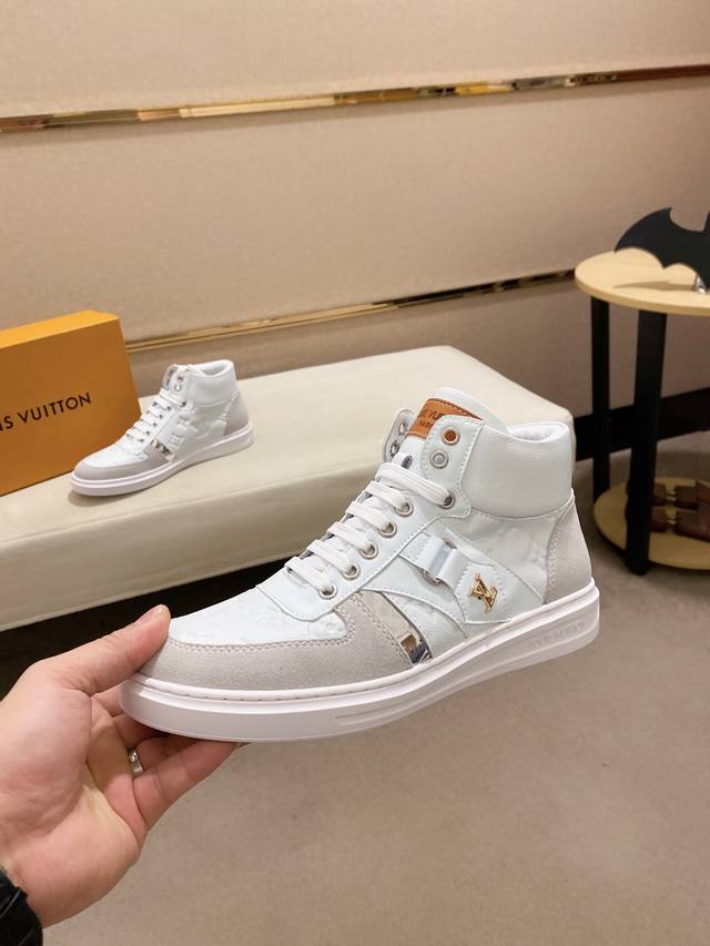 工厂价 顶级版本 Louis Vuitton 套脚高帮系列 原单 新款lv路易威登 顶级版本 Lv经典潮鞋!选用进口原版小牛皮...