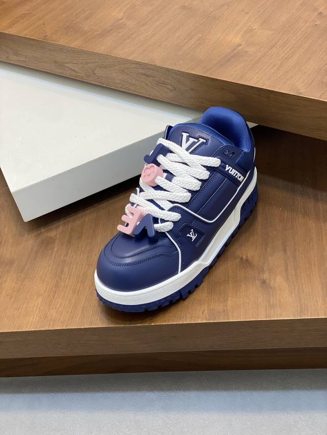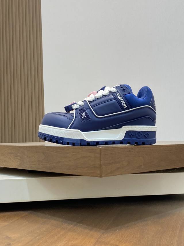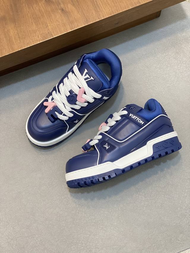 本款 Lv Trainer Maxi 运动鞋取材柔软牛皮革,以大号廓型和凸纹外底重绎原版 Lv Trainer 运动鞋设计,演绎复古篮球鞋的灵感启发。橡胶 Lv 字母标注鞋面,Monogram 花卉栖身外底。橡胶 Lv 字母分饰鞋舌、侧面和后部,侧面饰有 Vuitton 标识,外底饰有 Monogram 花卉,微弹套索扣式圆形鞋带。重工打造,多重材质复合拼接,精细工艺看细节,网面加厚棉内里及棉鞋垫。驴家的鞋子舒适度自不必多说。配全套原包装!