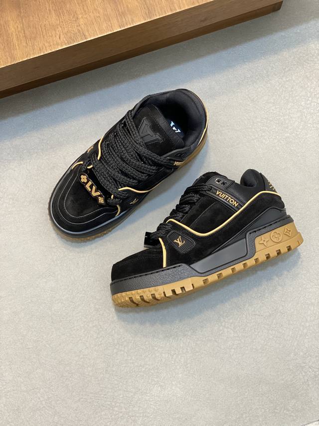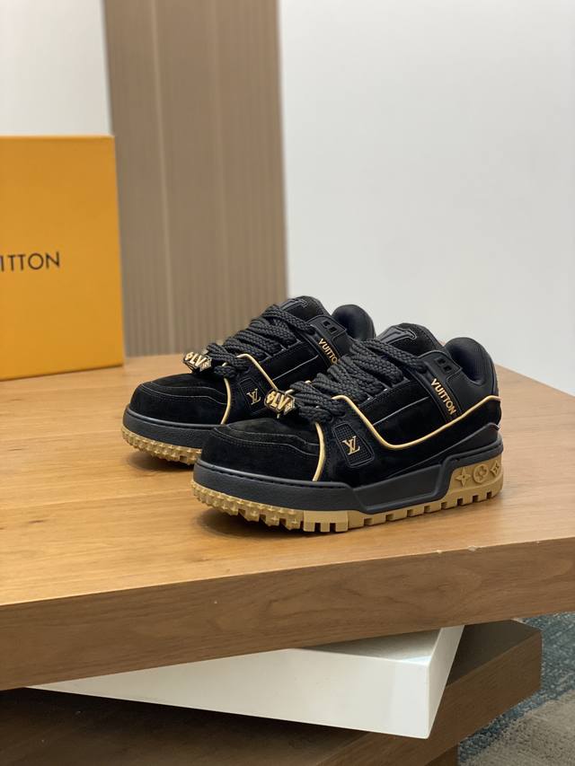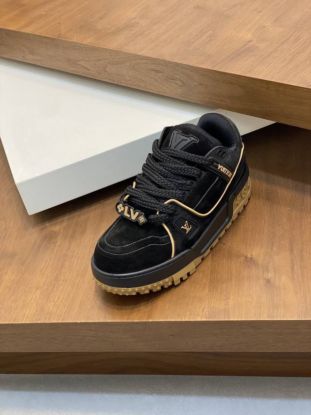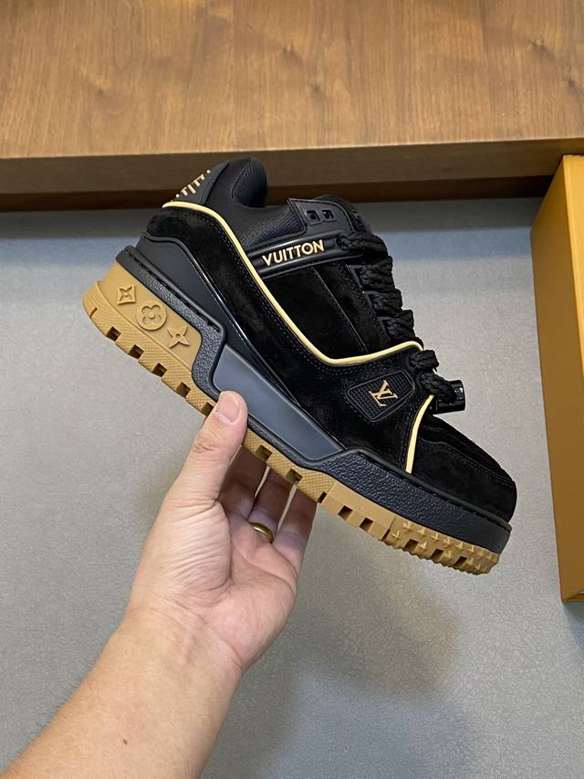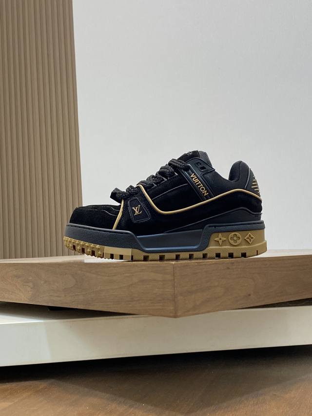 lv Trainer Maxi运动鞋出货 本款 Lv Trainer Maxi 运动鞋取材柔软牛皮革,以大号廓型和凸纹外底重绎原版 Lv Trainer 运动鞋