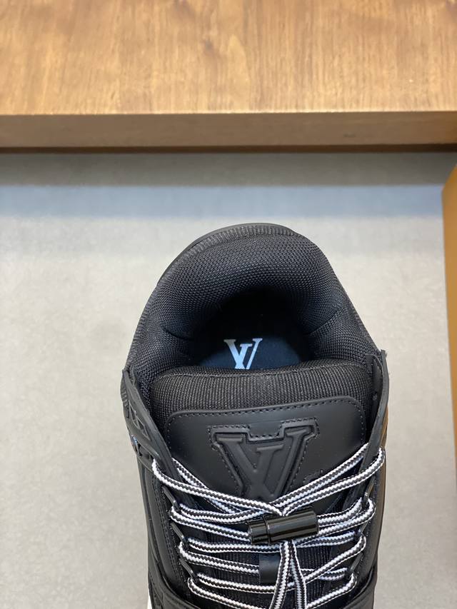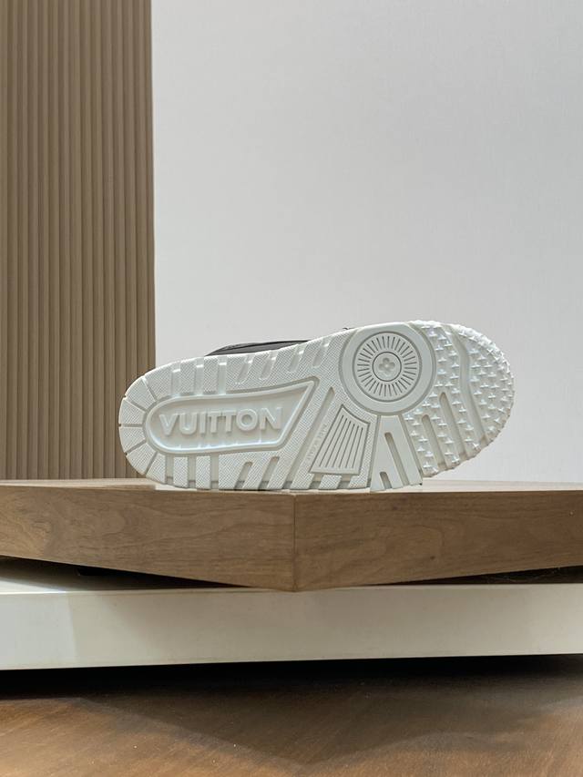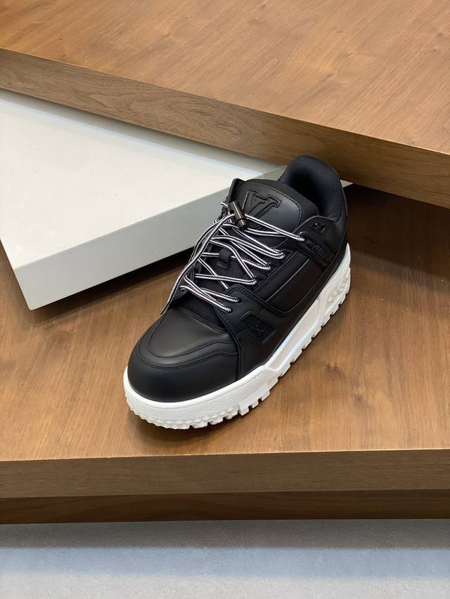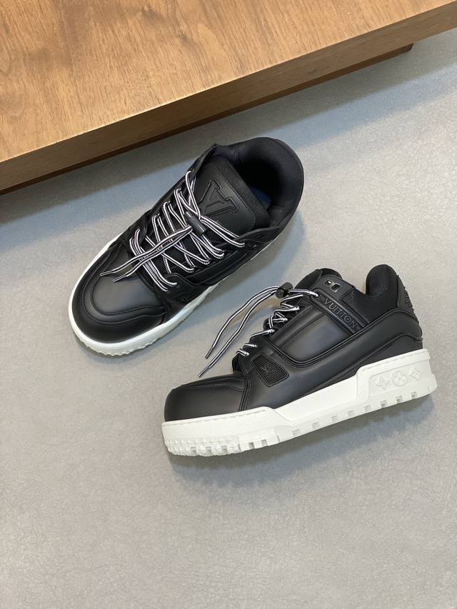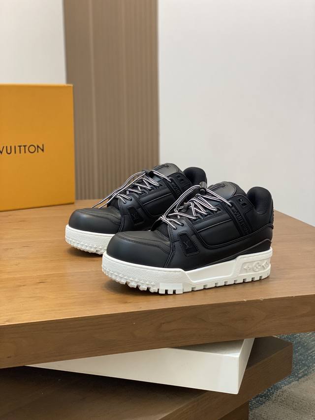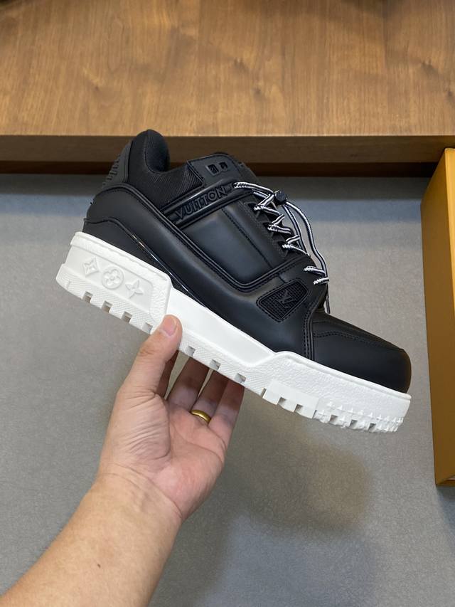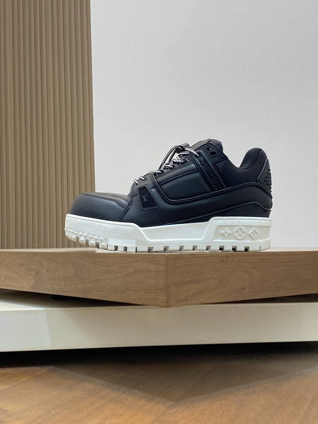 本款 Lv Trainer Maxi 运动鞋取材柔软牛皮革,以大号廓型和凸纹外底重绎原版 Lv Trainer 运动鞋设计,演绎复古篮球鞋的灵感启发。橡胶 Lv 字母标注鞋面,Monogram 花卉栖身外底。橡胶 Lv 字母分饰鞋舌、侧面和后部,侧面饰有 Vuitton 标识,外底饰有 Monogram 花卉,微弹套索扣式圆形鞋带。重工打造,多重材质复合拼接,精细工艺看细节,网面加厚棉内里及棉鞋垫。驴家的鞋子舒适度自不必多说。配全套原包装!