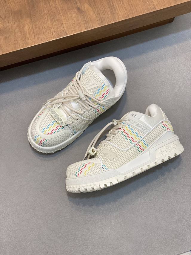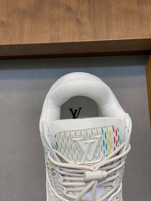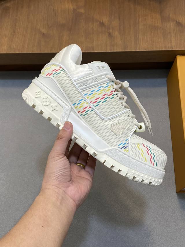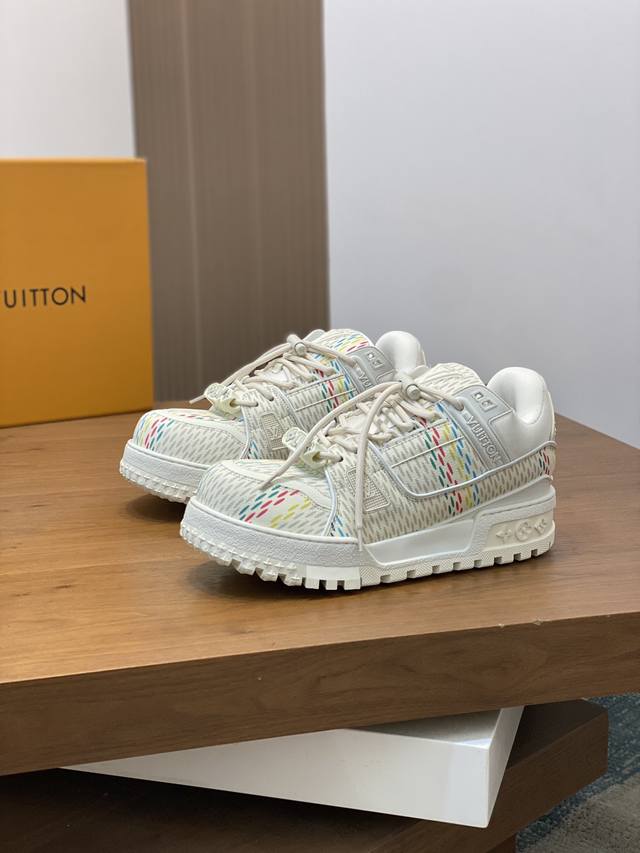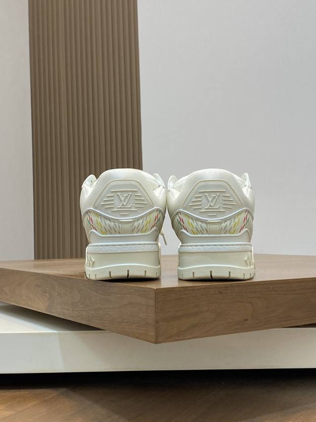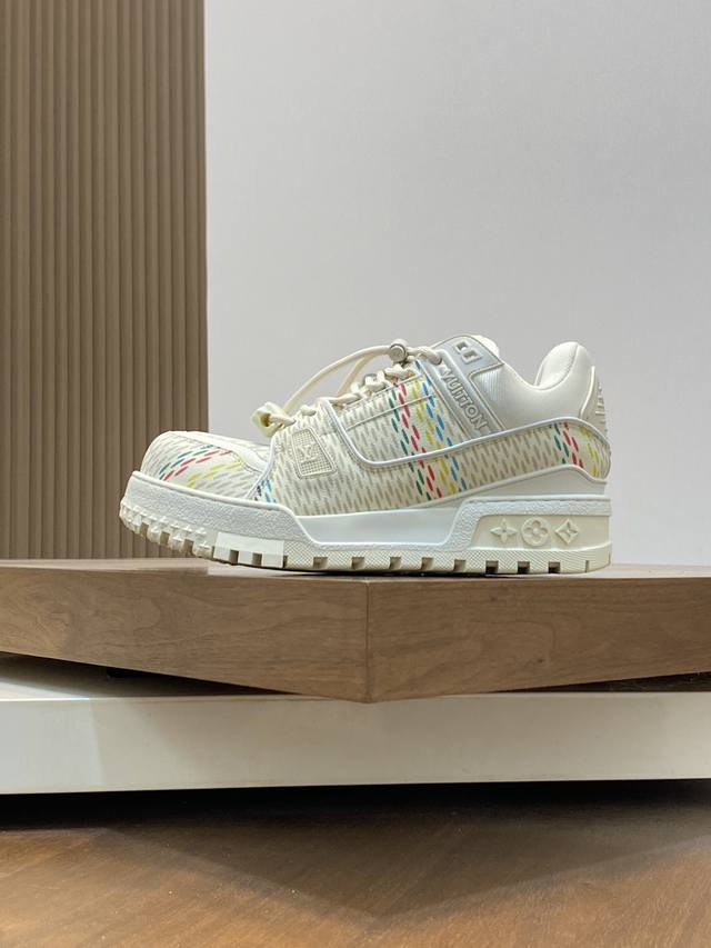 lv Trainer Maxi运动鞋出货 本款 Lv Trainer Maxi 运动鞋取材柔软牛皮革,以大号廓型和凸纹外底重绎原版 Lv Trainer 运动鞋
