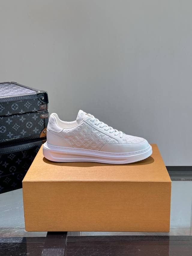Ouis *Uitto* 男士经典休闲运动鞋,本款 Beverly Hills 运动鞋为柔软牛皮革描摹经典 Monogram 印花,塑造优雅鞋面 橡胶外底厚实而不失轻盈,其上点缀路易威登标识压纹 加衬内底和科技内衬再度升级舒适体验 意大利进口羊皮内里高档舒适,原版大底轻盈耐磨!纯手工制作,细节决定品质!