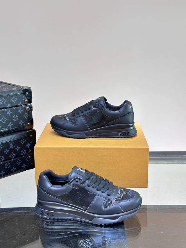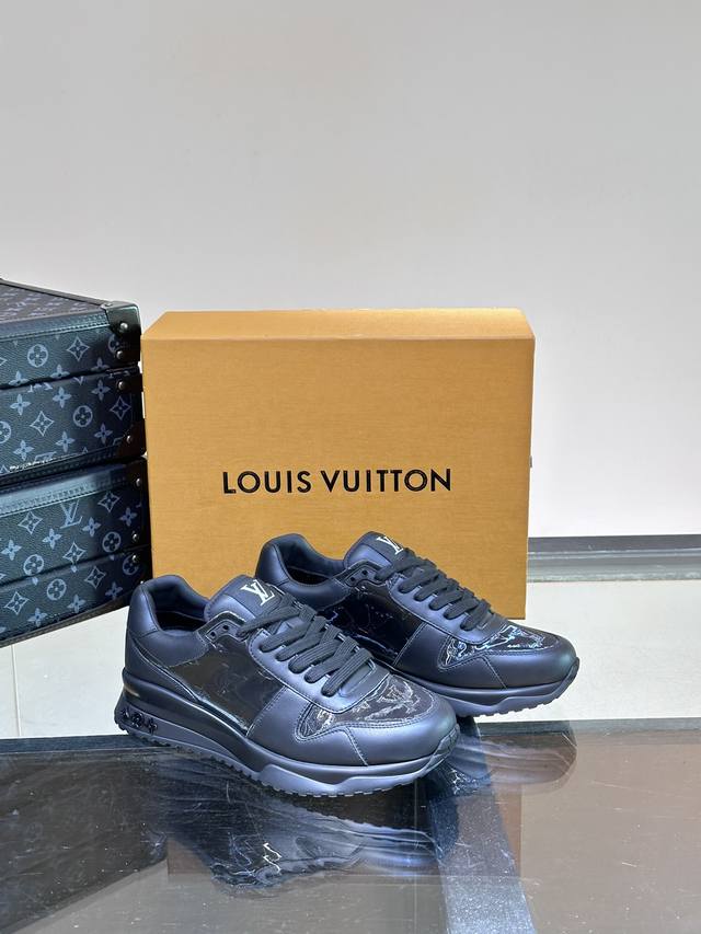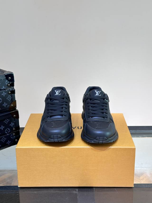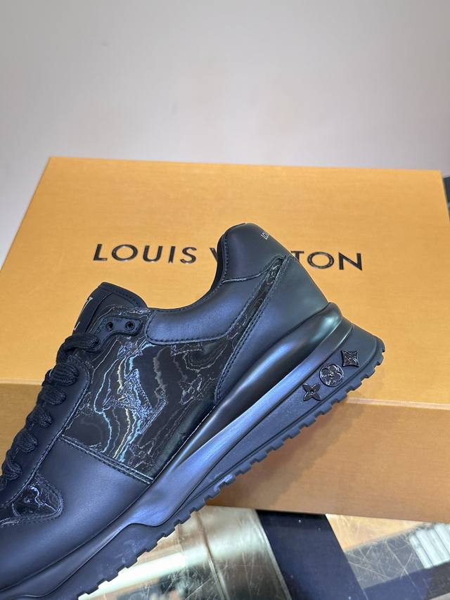 Ouis *Uitto* 运动鞋,本款 Run Away 运动鞋选用头层牛皮拼透气原版材质,楔形橡胶外底延续跑鞋设计,缀 Monogram 花卉,L V字母标注鞋舌,路易威登巴黎标识点缀后部。搭配品牌标识棉垫脚,网面内里后跟牛皮拼接包裹,上脚舒适透气!