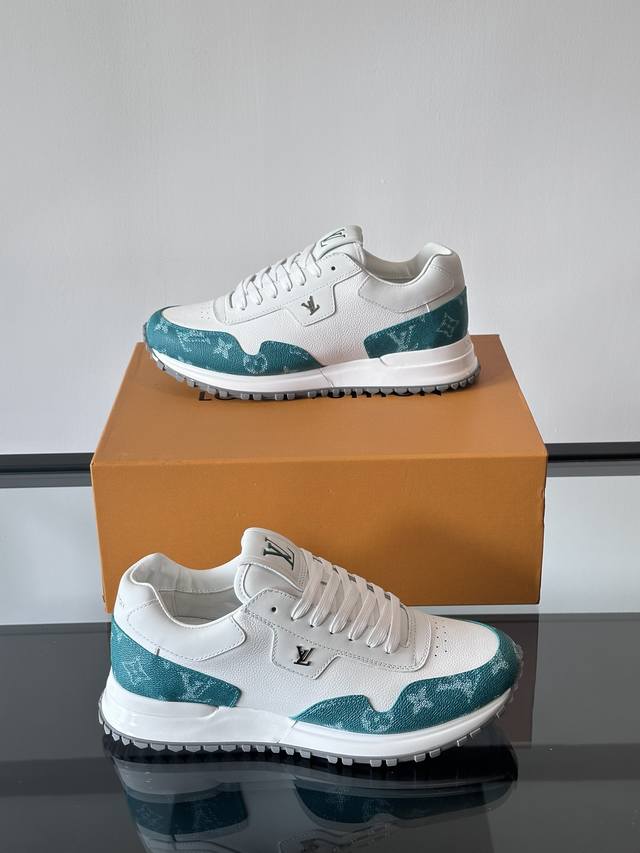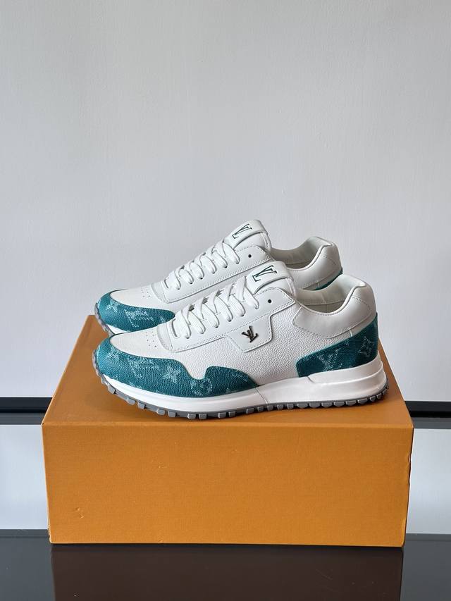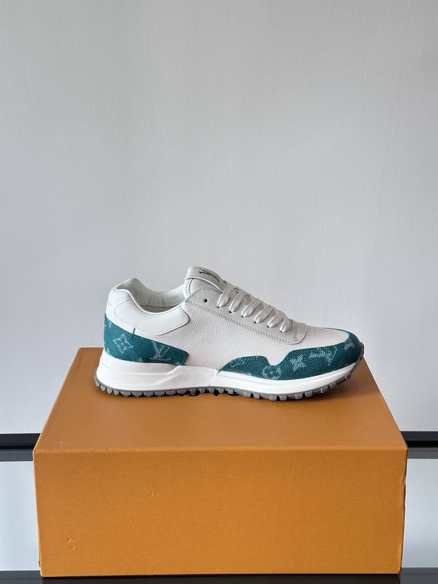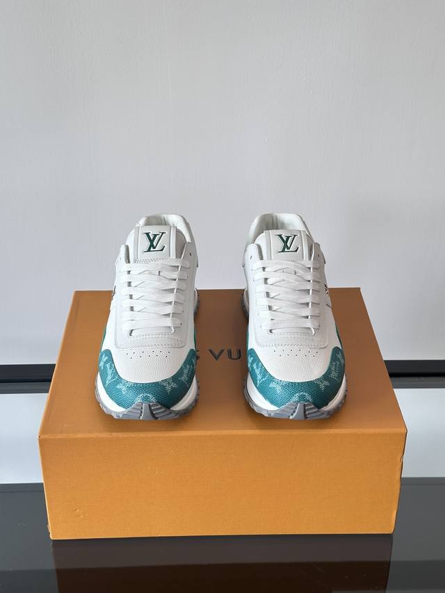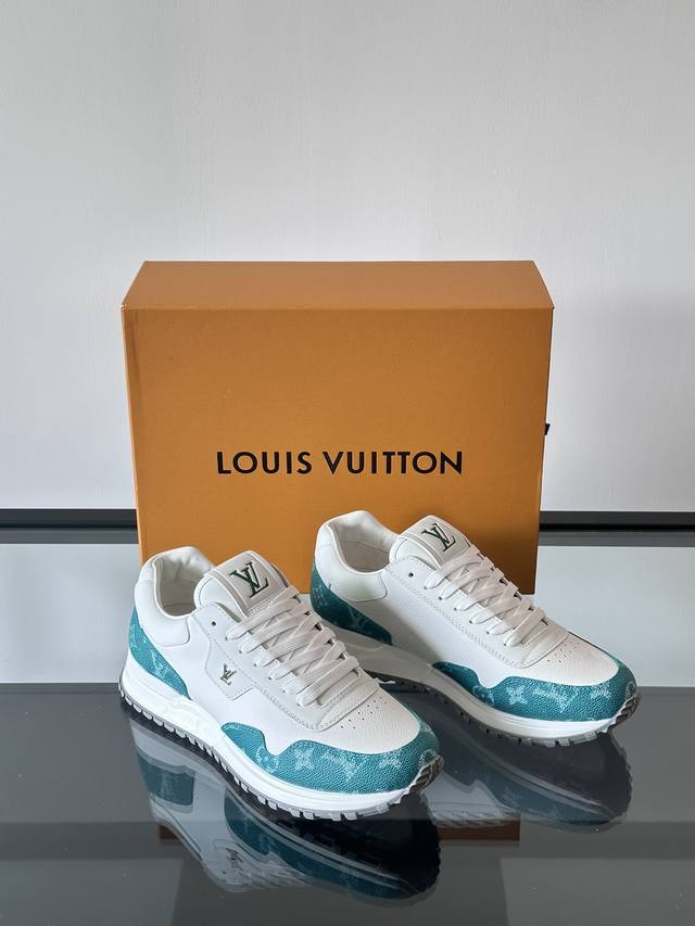 Ouis *Uitto* Run Away 运动鞋,本款 Run Away 运动鞋选用头层牛皮拼透气原版材质,楔形橡胶外底延续跑鞋设计,缀 Monogram 花卉,L V字母标注鞋舌,路易威登巴黎标识点缀后部。搭配品牌标识棉垫脚,网面内里后跟羊皮接包裹,上脚舒适透气!